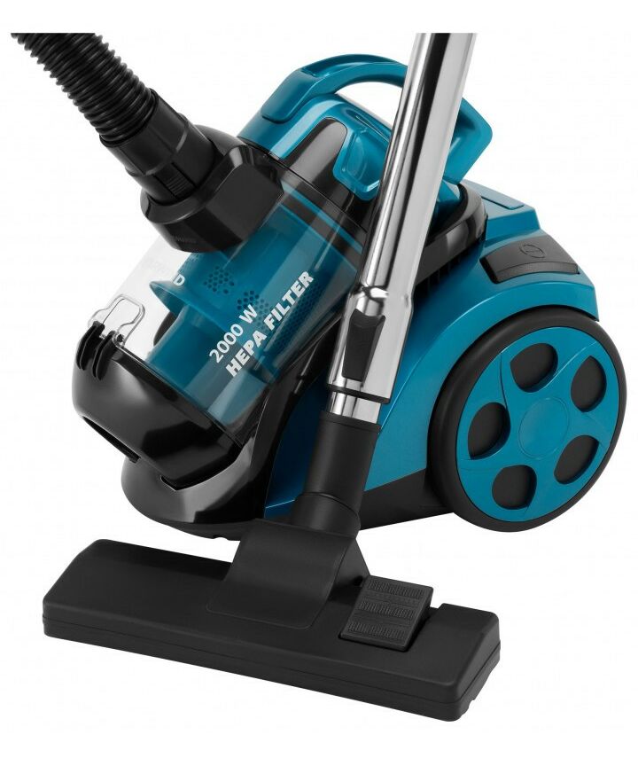 - Бытовая техника позволяет выполнить сухую уборку максимально качественно. Мощность устройства составляет 2000 Ватт, а мощность всасывания находится на уровне 350 Ватт. Объем предусмотренного в конструкции пылесборника равен 2,5 литра