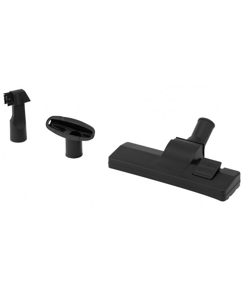 - В комплекте с бытовым прибором поставляется три насадки: универсальное изделие для ковра или напольного покрытия, для очистки труднодоступных мест, для уборки мягкой мебели