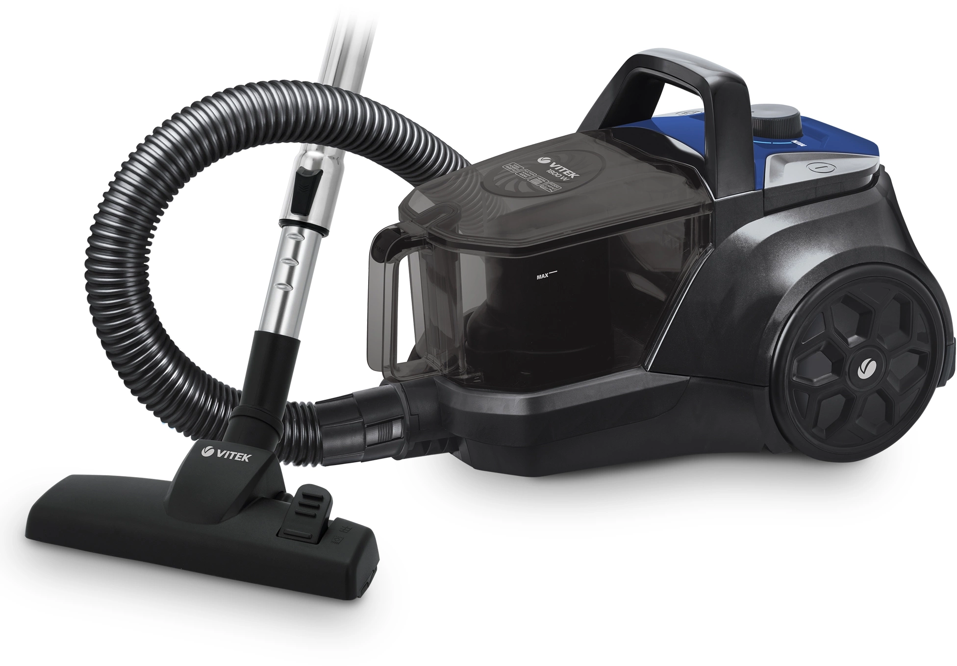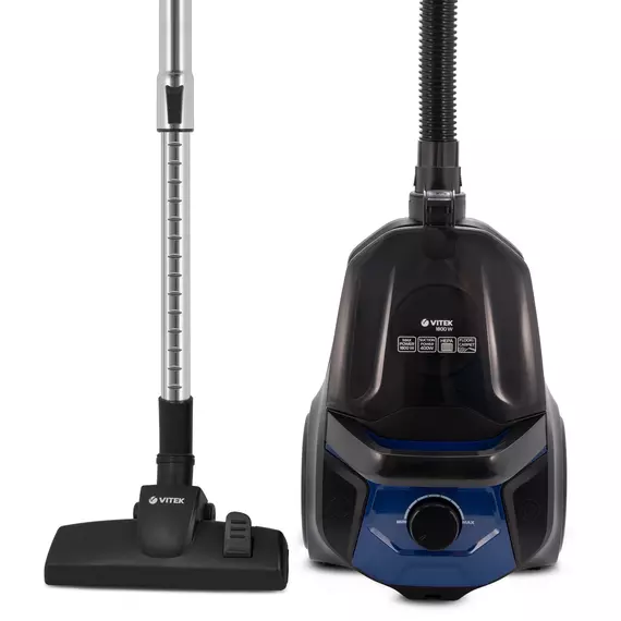 Пылесос Vitek VT-1829 Blue обычный, уборка: сухая, без мешка для сбора пыли (циклон), мощность 2000 Вт, мощность всасывания 450 Вт, регулятор мощности на корпусе, 6-ступенчатая система фильтрации, цвет синий
