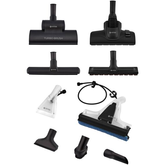 | Аксессуары в комплекте | насадка для мытья окон, насадка для мягкой мебели, насадка для пола и ковров, турбощетка, щелевая насадка |