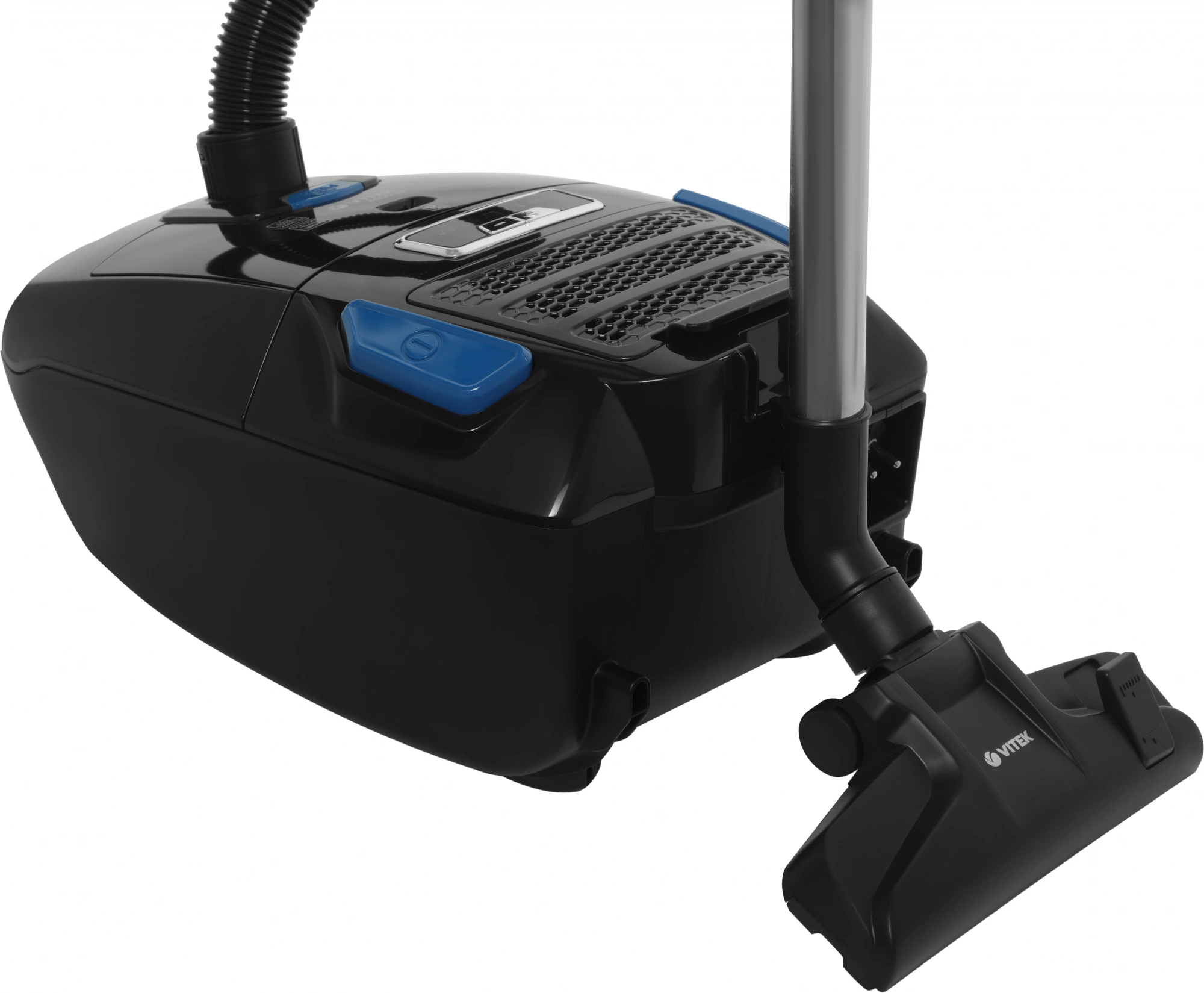 Пылесос Vitek VT-1899 с сухой уборкой, мощностью всасывания 400 Вт. Объем мешка для сбора пыли составляет 4 литра.