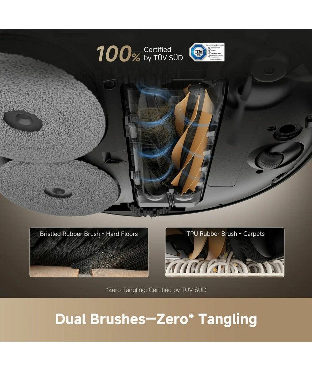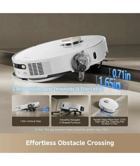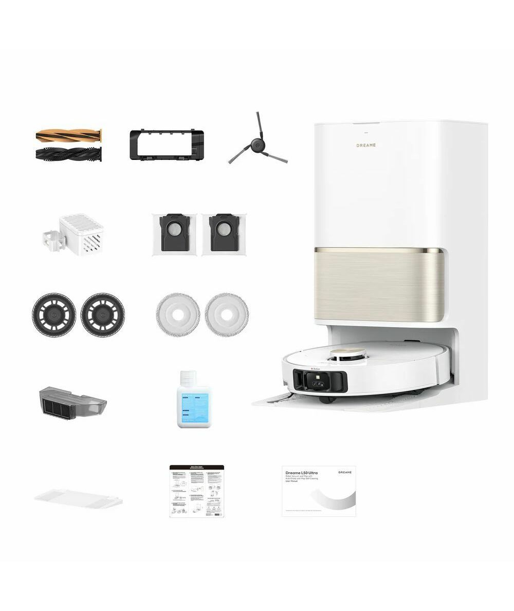 | Комплект поставки | Робот-пылесос, базовая станция, боковая щетка, основная щетка, пластина для увеличения рампы базовой станции, салфетка для швабры - 2 шт (предварительно установленная), документация, держатель салфеток для швабры - 2 шт, мешок для мусора - 2 шт (предварительно установленный — 1 шт), ингибитор образования накипи, фильтр-пылесборник, чистящее средство |