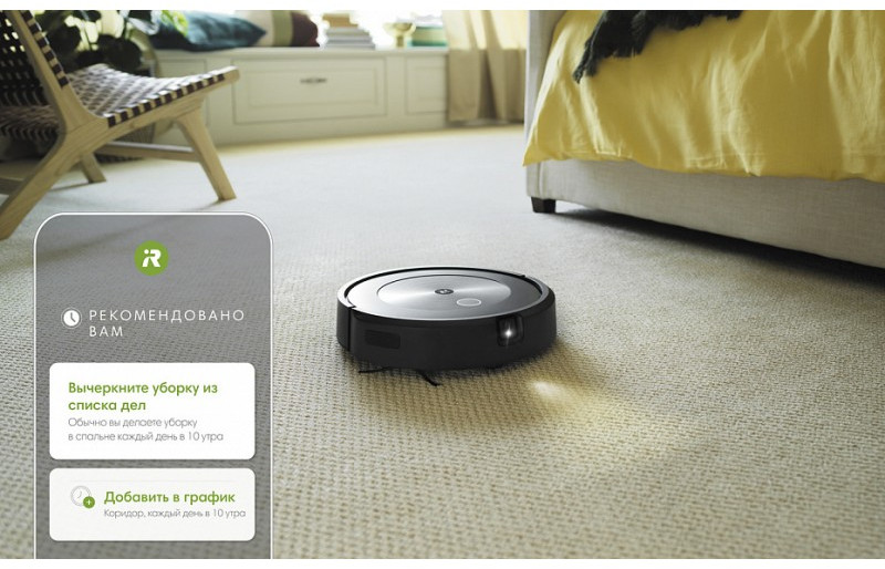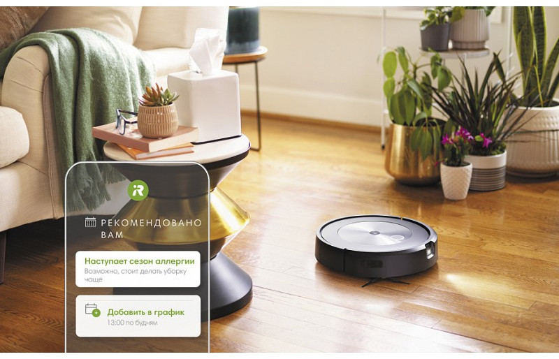 - Робот-пылесос Roomba® j7 изучает, как вы обычно делаете уборку, и автоматически предлагает персональные рекомендации по программированию графика уборки с учетом даже таких аспектов, как периоды, когда нужно делать уборку чаще, например во время линьки домашних животных или в период аллергии.