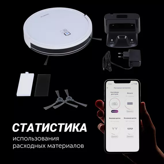 | Функции робота-пылесоса | автоматическая работа, автоматический поиск зарядного устройства, построение карты помещения, уборка по расписанию, управление со смартфона |