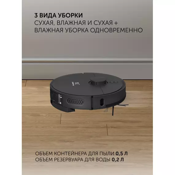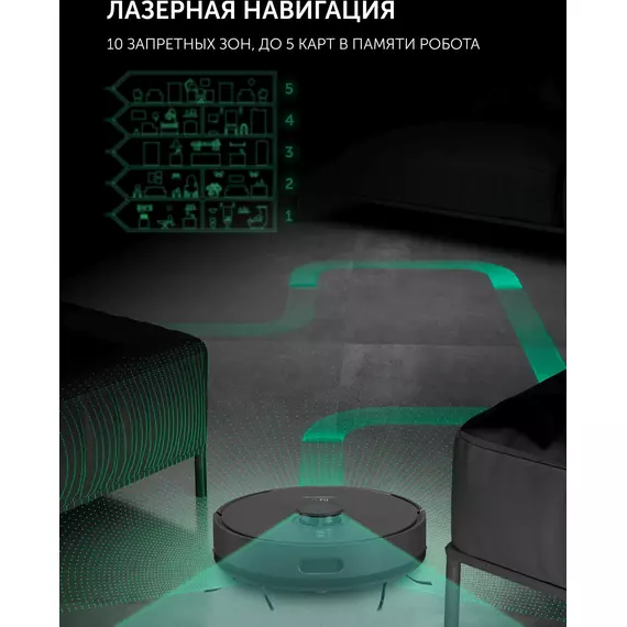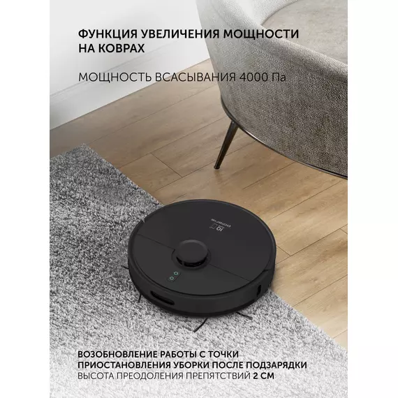 | Особенности | Высокоточная система лазерной навигации для построения карты помещения, сохраняет до 3 карт; Разделение на зоны уборки – до 10 комнат; Ограничение зоны уборки - до 10 зон в каждой комнате; Возобновление уборки с точки остановки после подзарядки; Расписание уборки: часы, дни.CP2 |