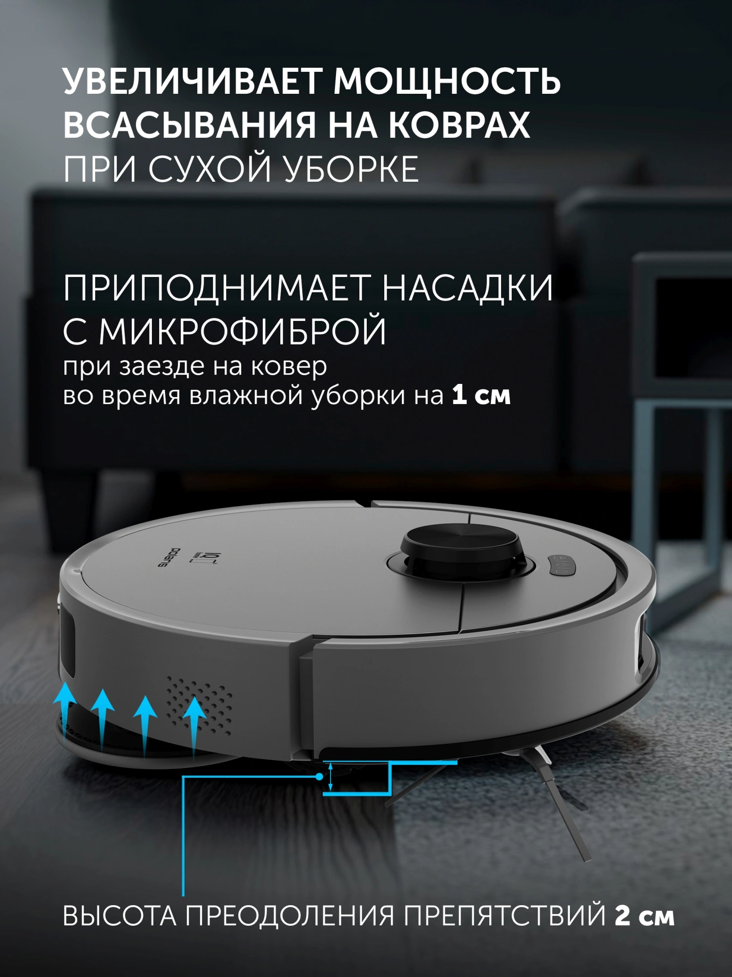 | Функции робота-пылесоса | распознавание ковров, управление со смартфона |