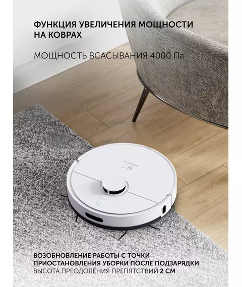 | Особенности | Высокоточная система лазерной навигации для построения карты помещения, сохраняет до 3 карт; Разделение на зоны уборки – до 10 комнат; Ограничение зоны уборки - до 10 зон в каждой комнате; Возобновление уборки с точки остановки после подзарядки; Расписание уборки: часы, дни.CP2 |