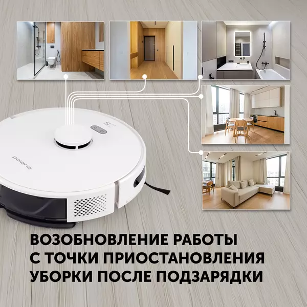 Функции робота-пылесоса | автоматическая работа, автоматический поиск зарядного устройства, выбор зоны, построение карты помещения, продолжение уборки после дозарядки, распознавание ковров, сохранение карты помещения, уборка по расписанию, управление со смартфона |