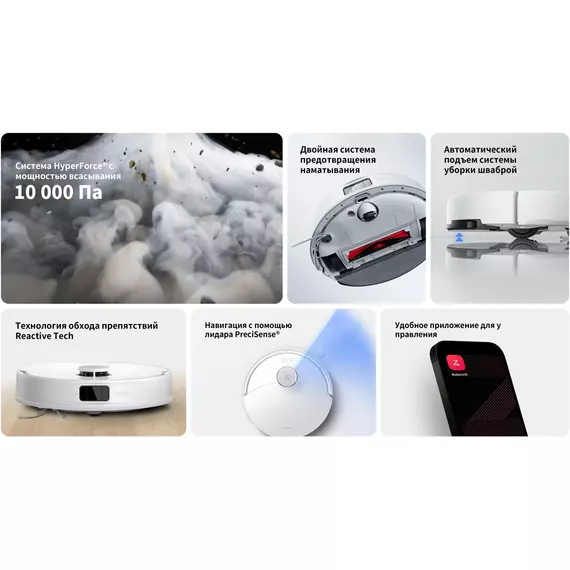 | Функции робота-пылесоса | автоматический поиск зарядного устройства, выбор зоны, построение карты помещения, сохранение карты помещения, управление со смартфона |