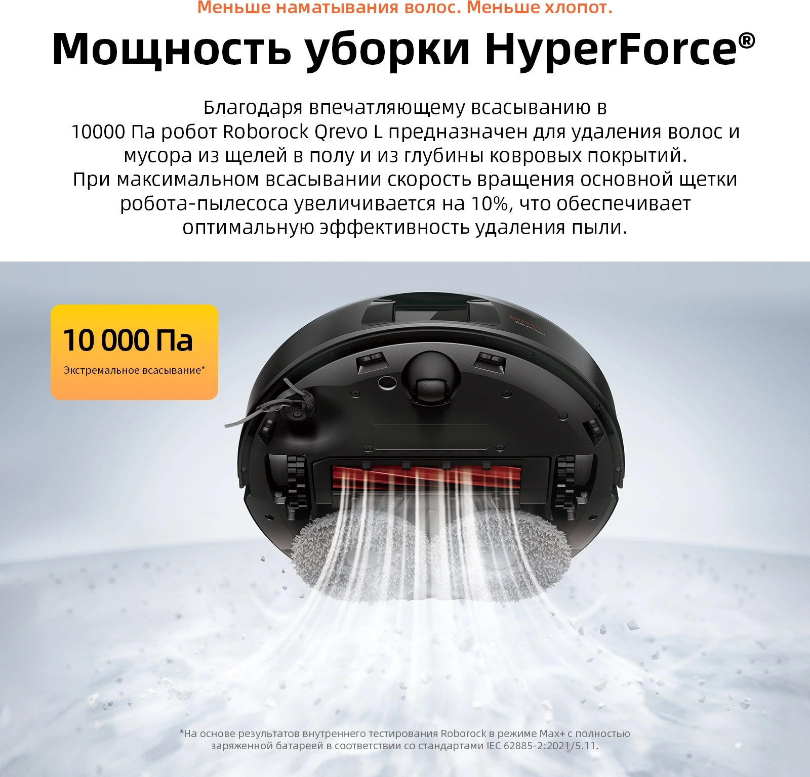 Пылесос-робот Roborock Qrevo L 60Вт черный (в компл.:1мешок) [QRL52-02]