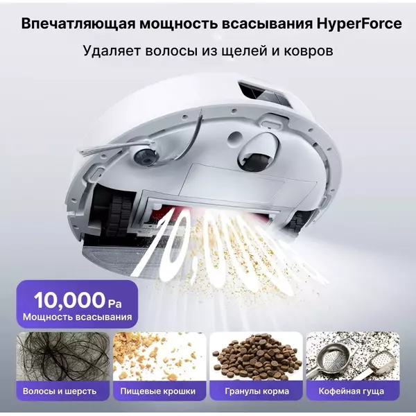 Функции робота-пылесоса | автоматический поиск зарядного устройства, построение карты помещения, распознавание ковров, сохранение карты помещения, уборка по расписанию, управление со смартфона |