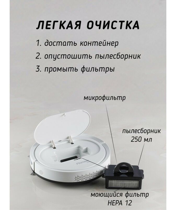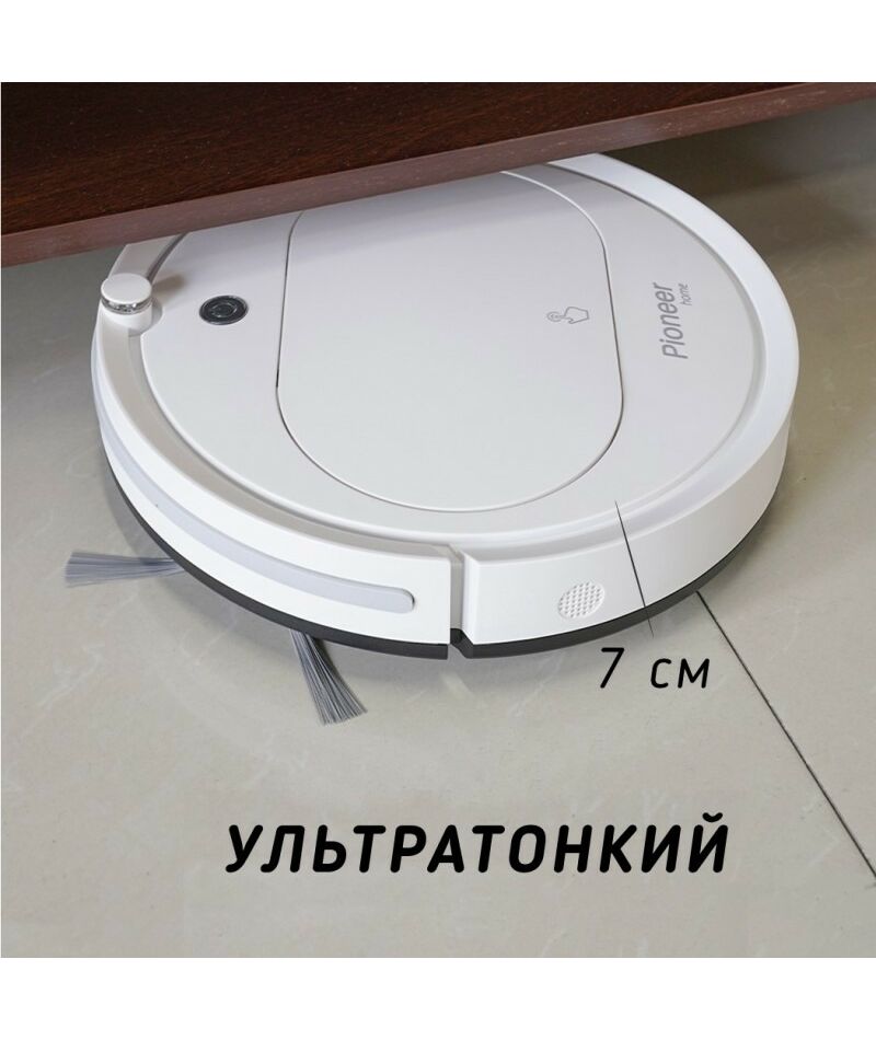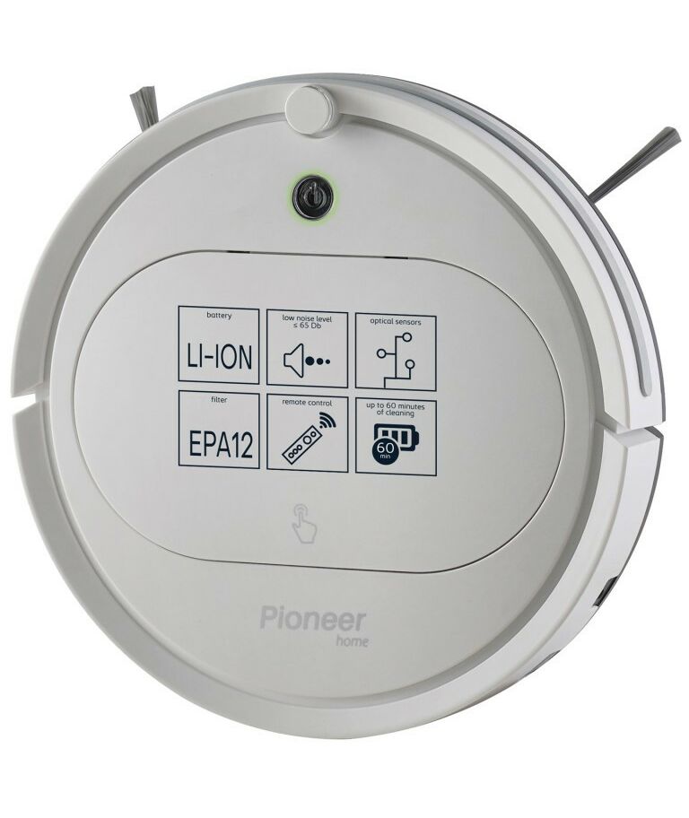 - Умный робот-пылесос Pioneer поможет вам поддерживать идеальную чистоту в любом жилом или офисном помещении. Модель VC701R выполнена в стильном пластиковом корпусе толщиной всего 7 см, что позволяет производить уборку под кроватью, диваном, тумбочкой или шкафом