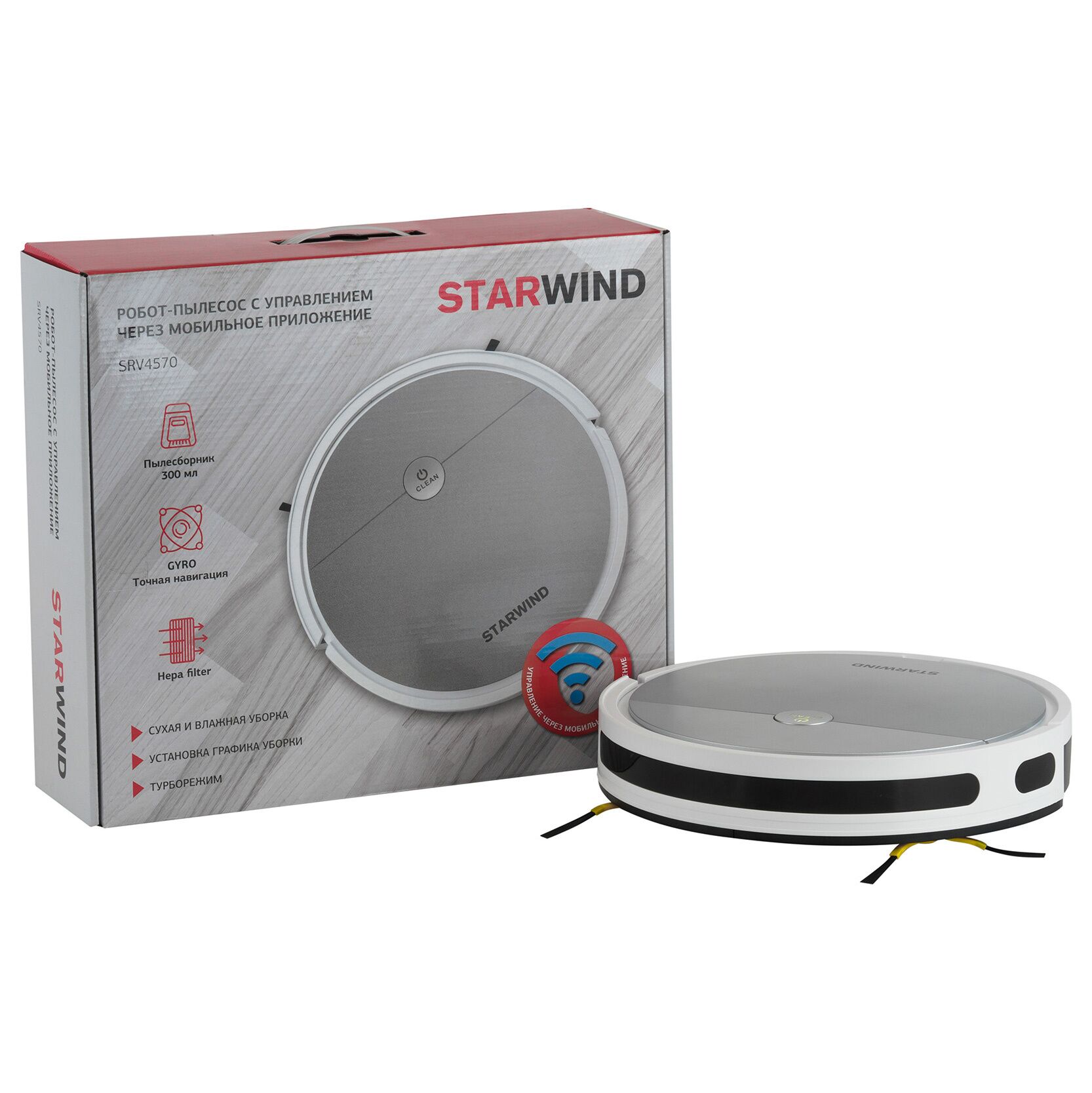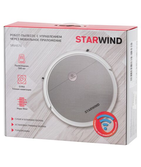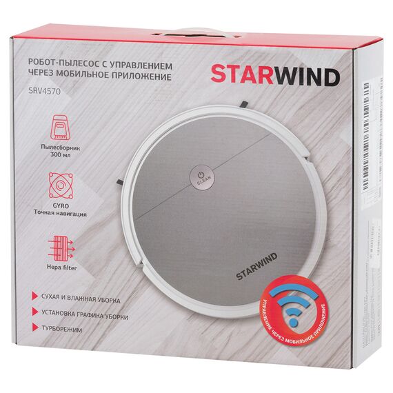 Робот-пылесос STARWIND SRV4570 15Вт, серебристый/белый
