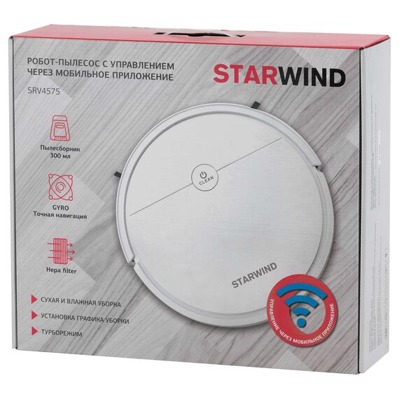 Робот-пылесос STARWIND SRV4575 15Вт, белый/белый