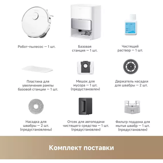 | Функции робота-пылесоса | автоматическая работа, автоматический поиск зарядного устройства, выбор зоны, построение карты помещения, продолжение уборки после дозарядки, распознавание ковров, сохранение карты помещения, уборка по расписанию, управление со смартфона |