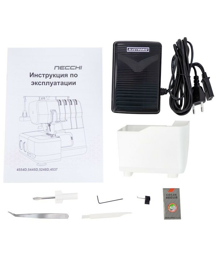 Оверлок Necchi 4554D с электромеханическим управлением используется для качественной обметки срезов при пошиве различных изделий в домашних условиях. Часть рабочей платформы устройства может сниматься, образуя свободный рукав, что позволяет удобно обрабатывать манжеты, штанины и узкие проймы без необходимости их распарывать.