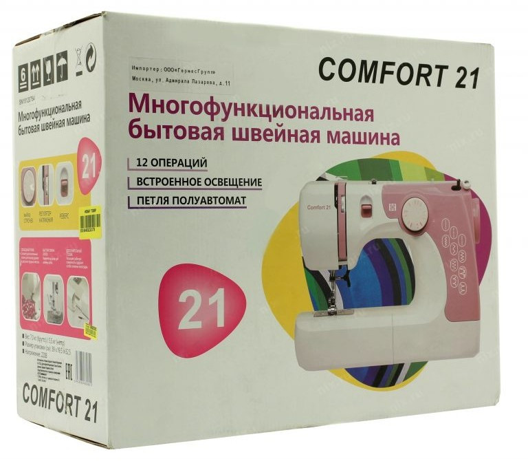 Металлический челнок располагается вертикально, а встроенный силовой агрегат в виде электродвигателя приводится в действие при помощи чувствительной ножной педали. Аппарат питается от стандартной розетки с напряжением 220 В