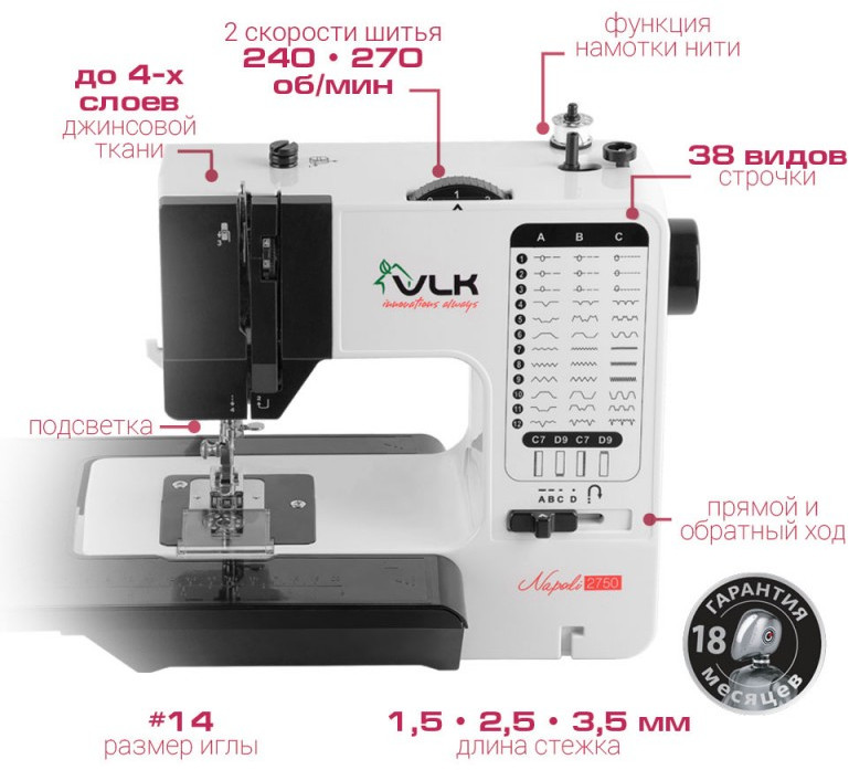 Швейная машина VLK Napoli 2750 черный/белый [90017]