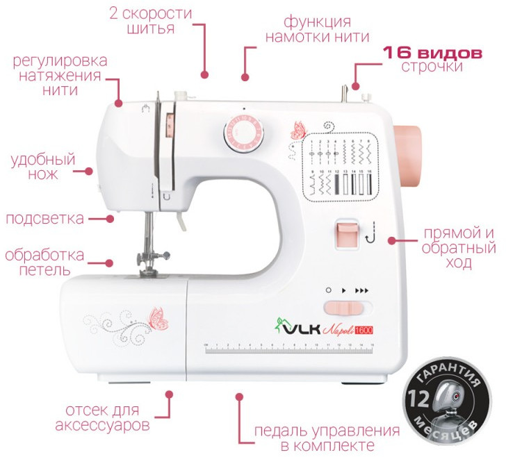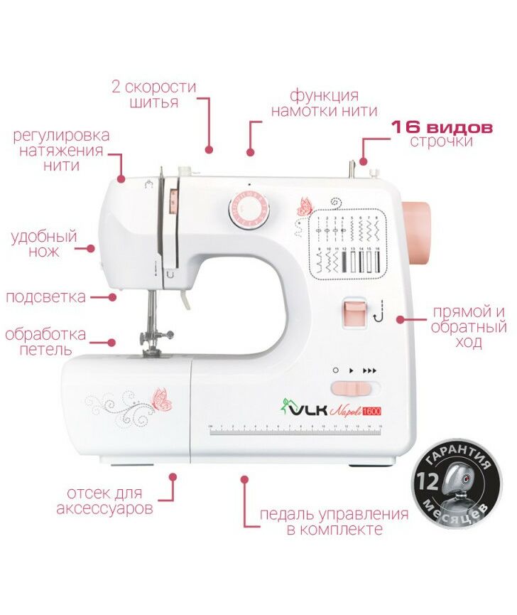 - Регулировка ширины прижима ткани Зигзагообразные или декоративные линии различной ширины