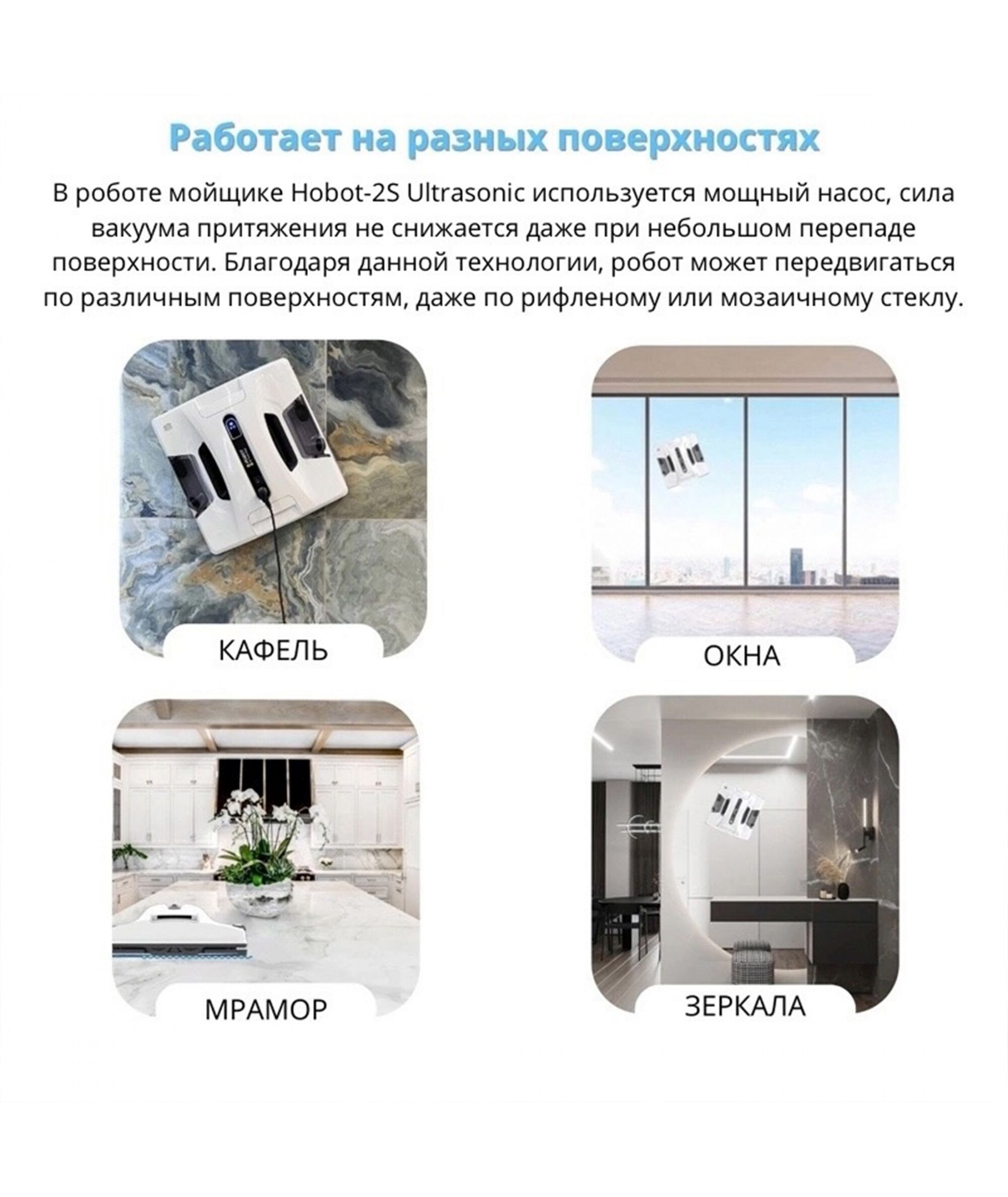 Робот мойщик окон Hobot 2S способен чистить стекла любой толщины и различные стеклянные поверхности, такие как зеркала, стеклянные перегородки и двери. Универсальная, многоразовая салфетка из микрофибры, эффективно собирает и удерживает пыль, не оставляет царапин и эффективнее промывает углы.