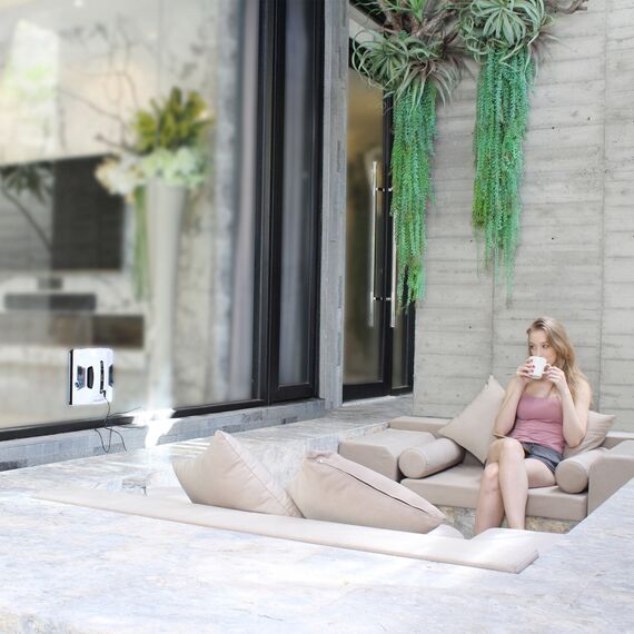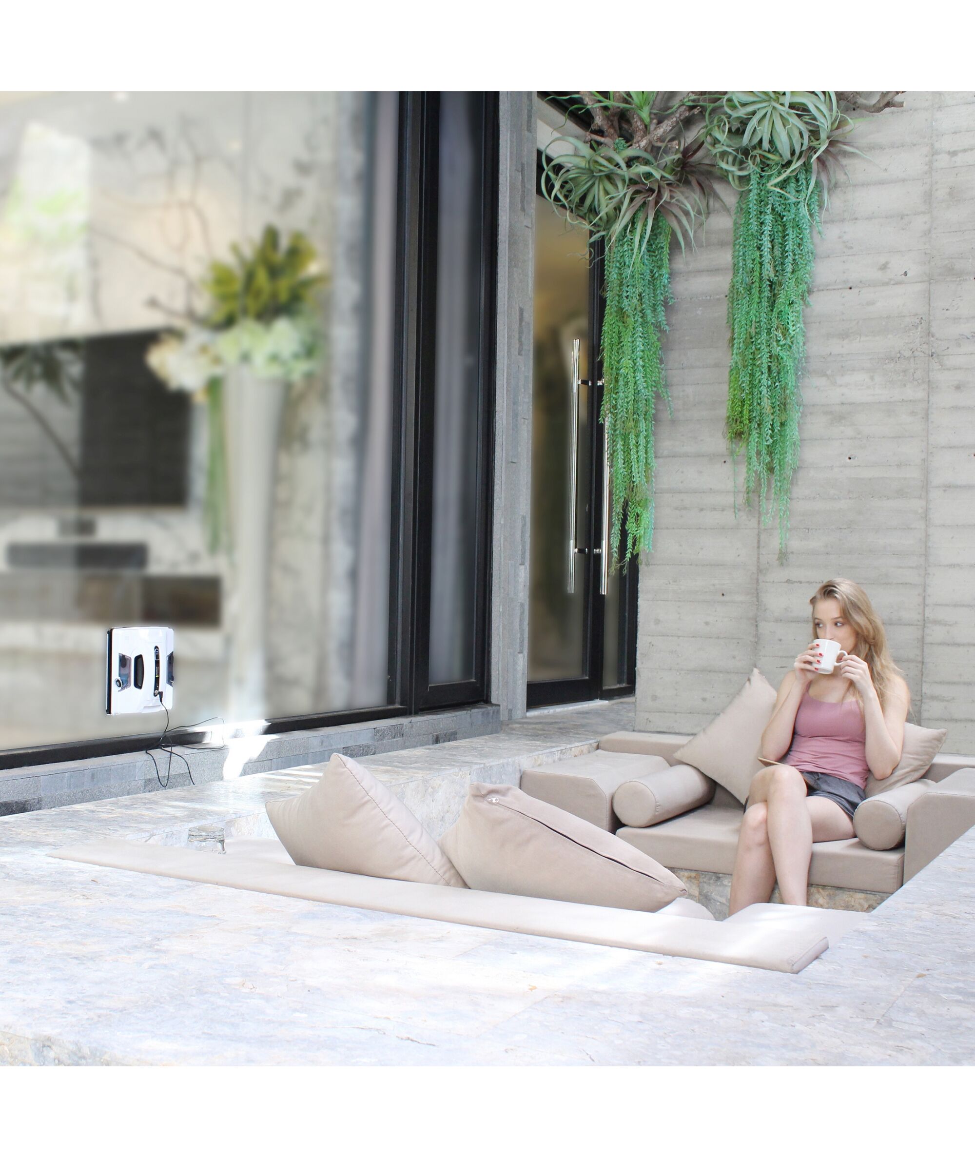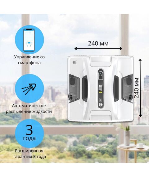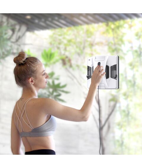 | Особенности | инверторный двигатель Nidec(пр-во Япония); подходит для любой толщины стекла; программа интеллектуальной очистки AI-Technology; два ультразвуковых разбрызгивателя Ultrasonic Spray; встроенный ИБП; приспособлен для использования на бескаркасных окнах; чистящие салфетки из микрофибры и др. |