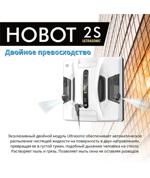 Мойщик окон Hobot 2S Ultrasonic ширина скребка 240мм, питание от сети, белый