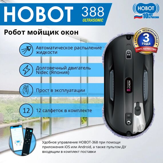 Мойщик окон Hobot 388 ширина скребка 148мм, питание от сети, черный