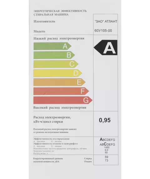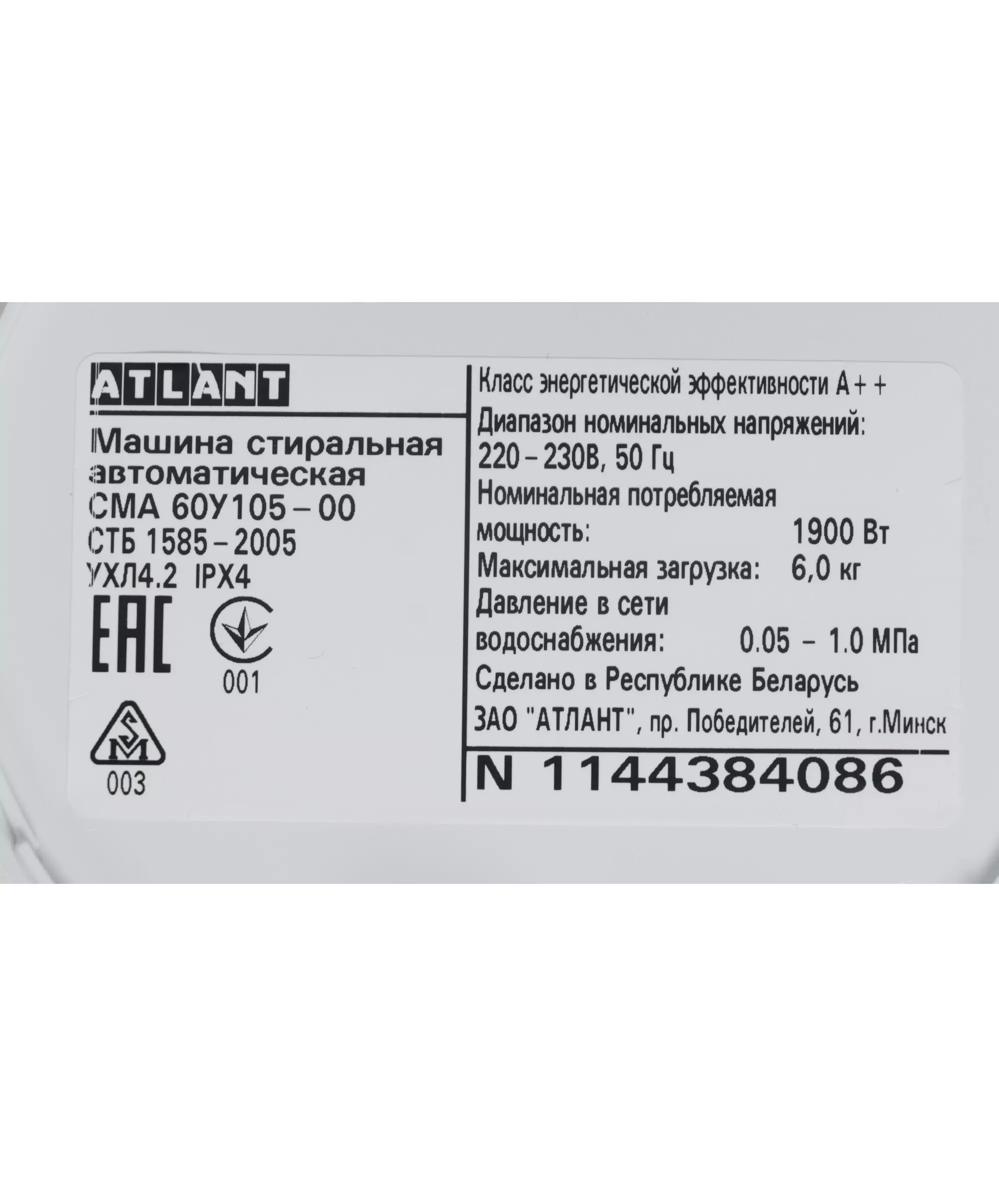 Стиральная машина Атлант СМА 60 У 105-00 класс: A++ загр.фронтальная макс.:6кг белый