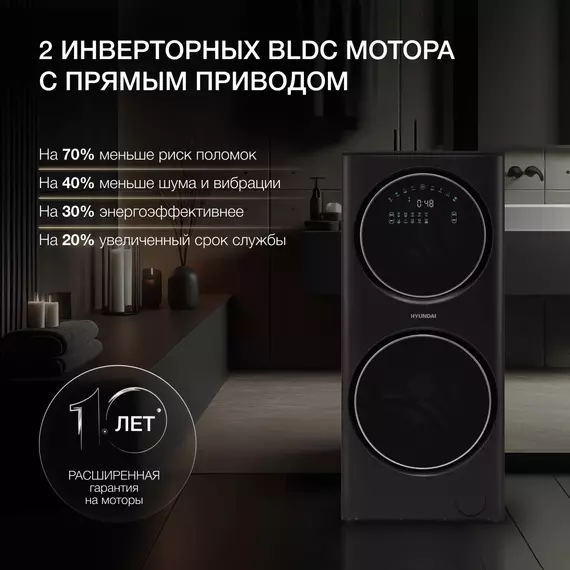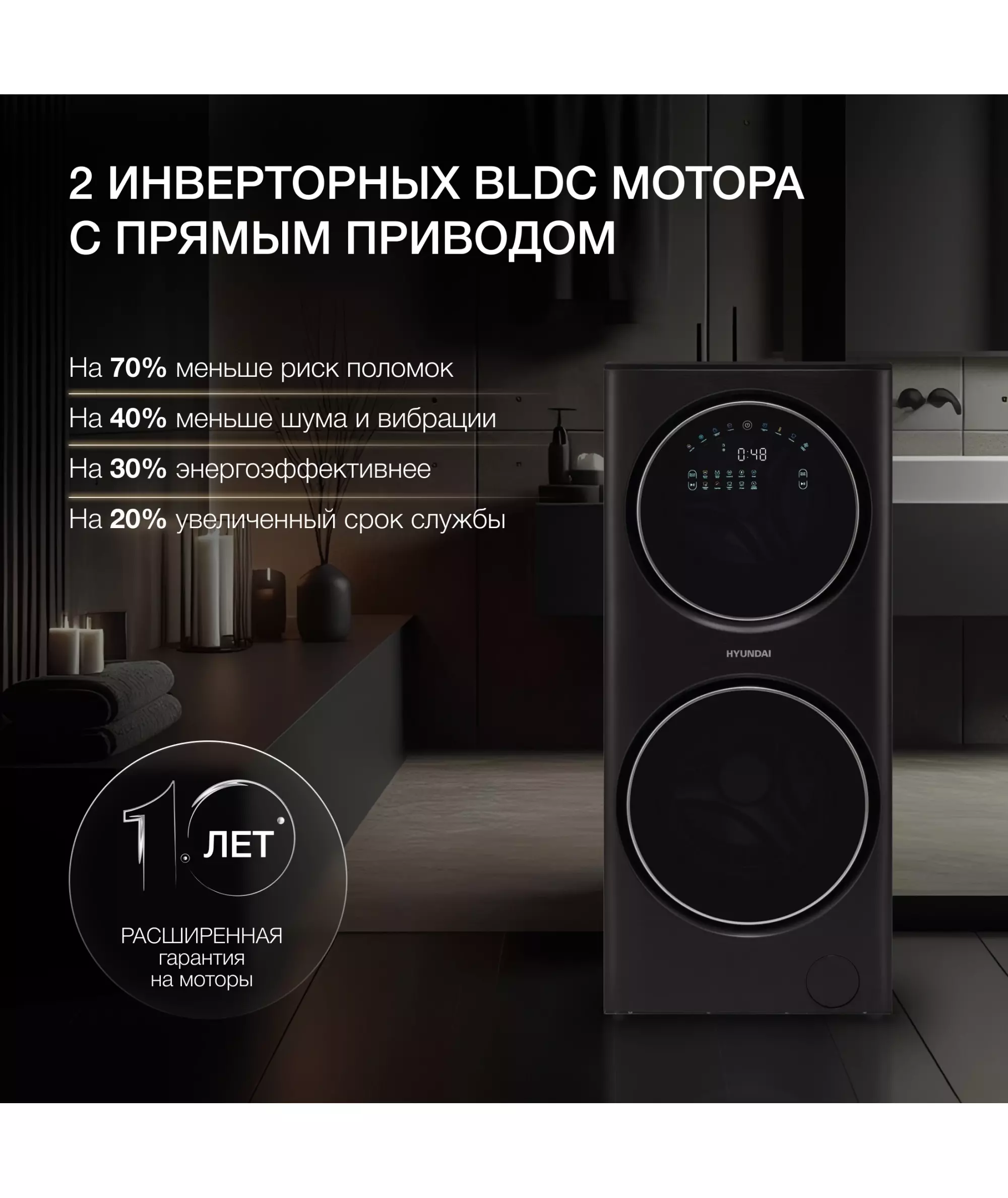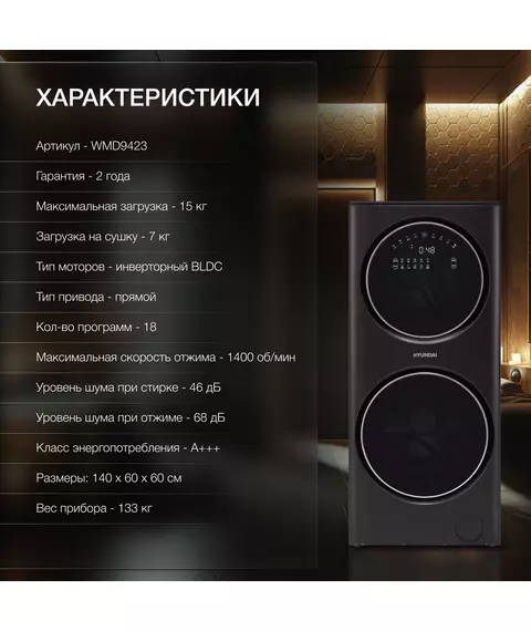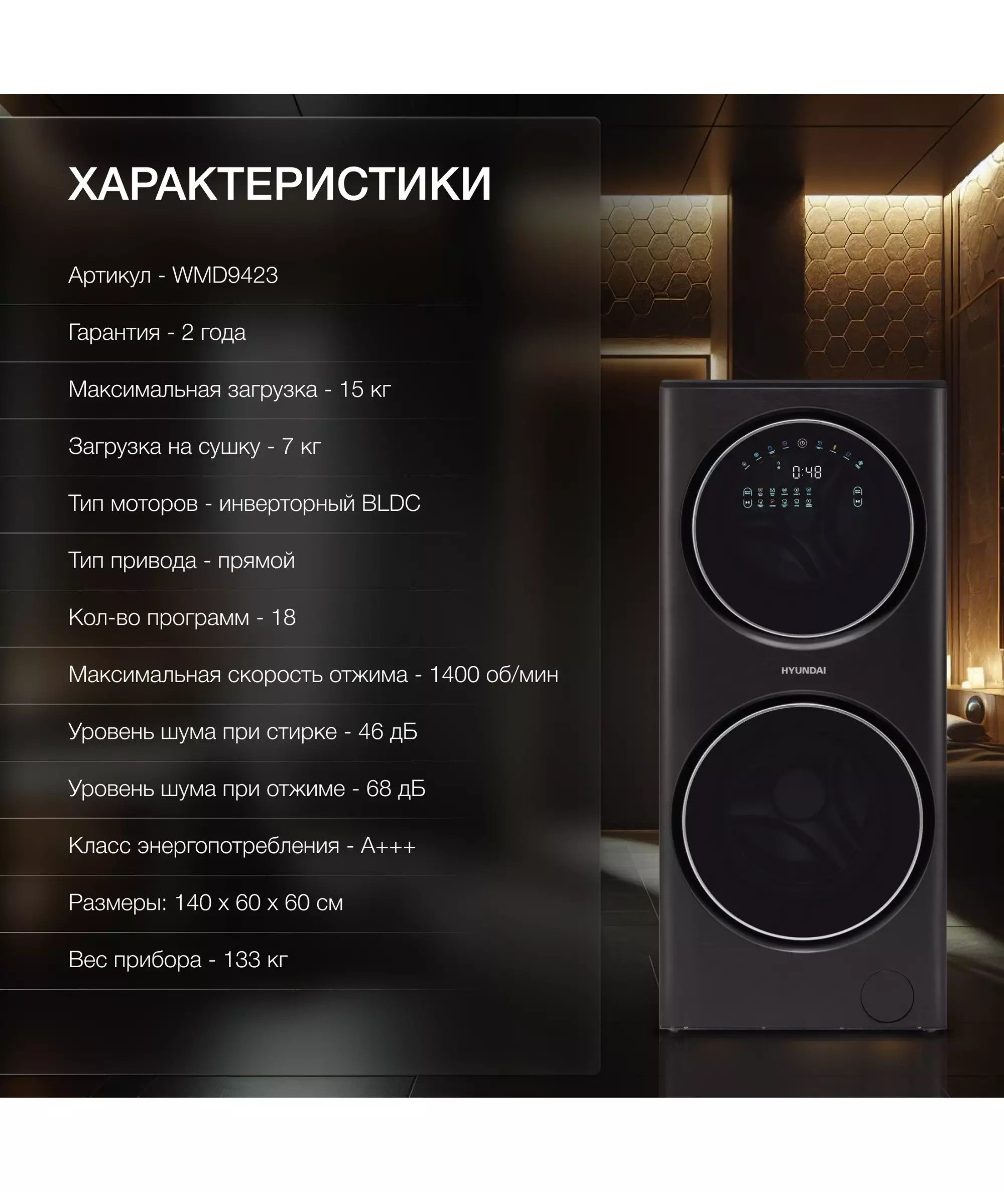 Стиральная машина Hyundai Gemini WMD9423 Класс: A+++ загр.фронтальная макс.:15кг (с сушкой) темно-серебристый инвертер [WMD9423]