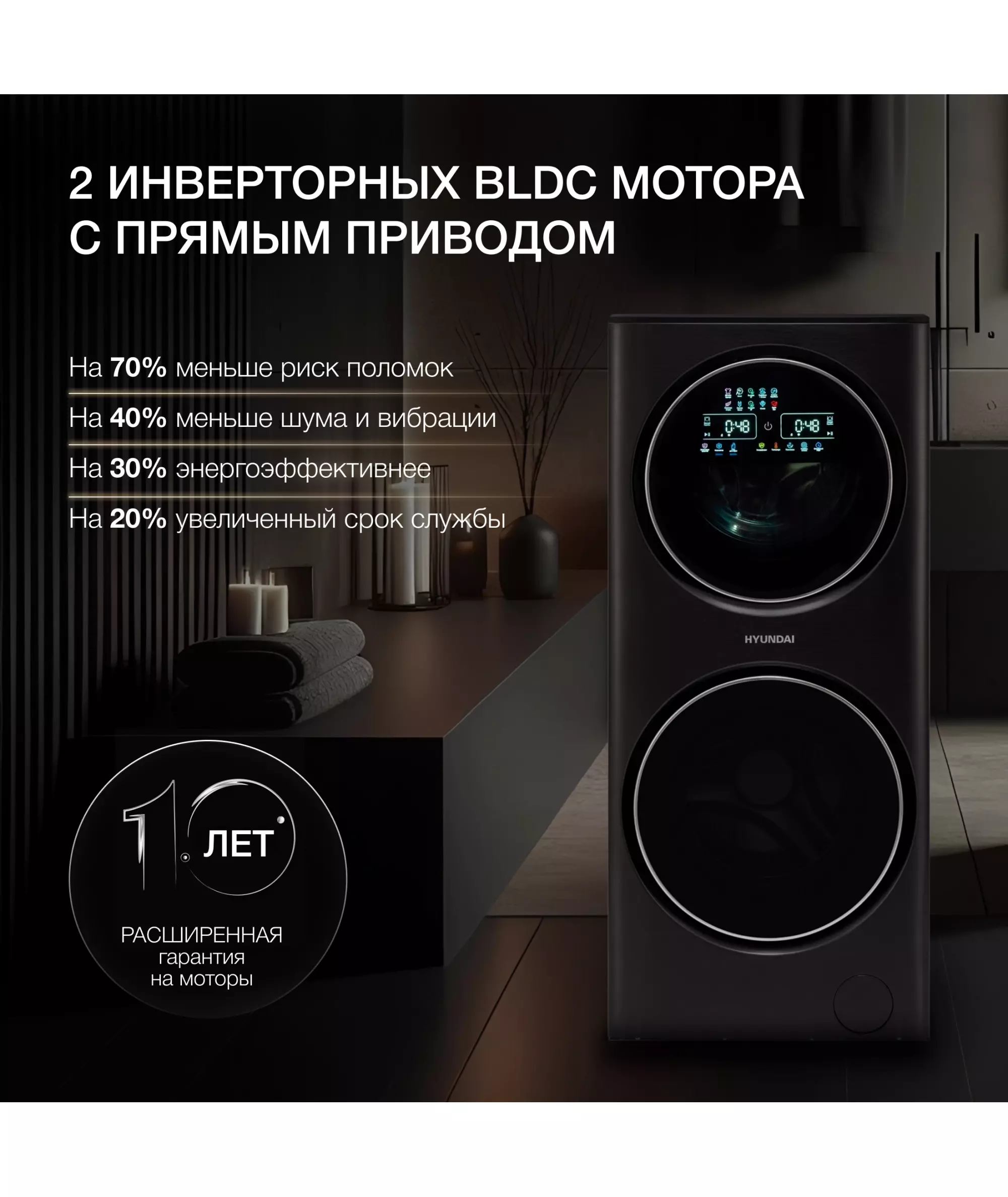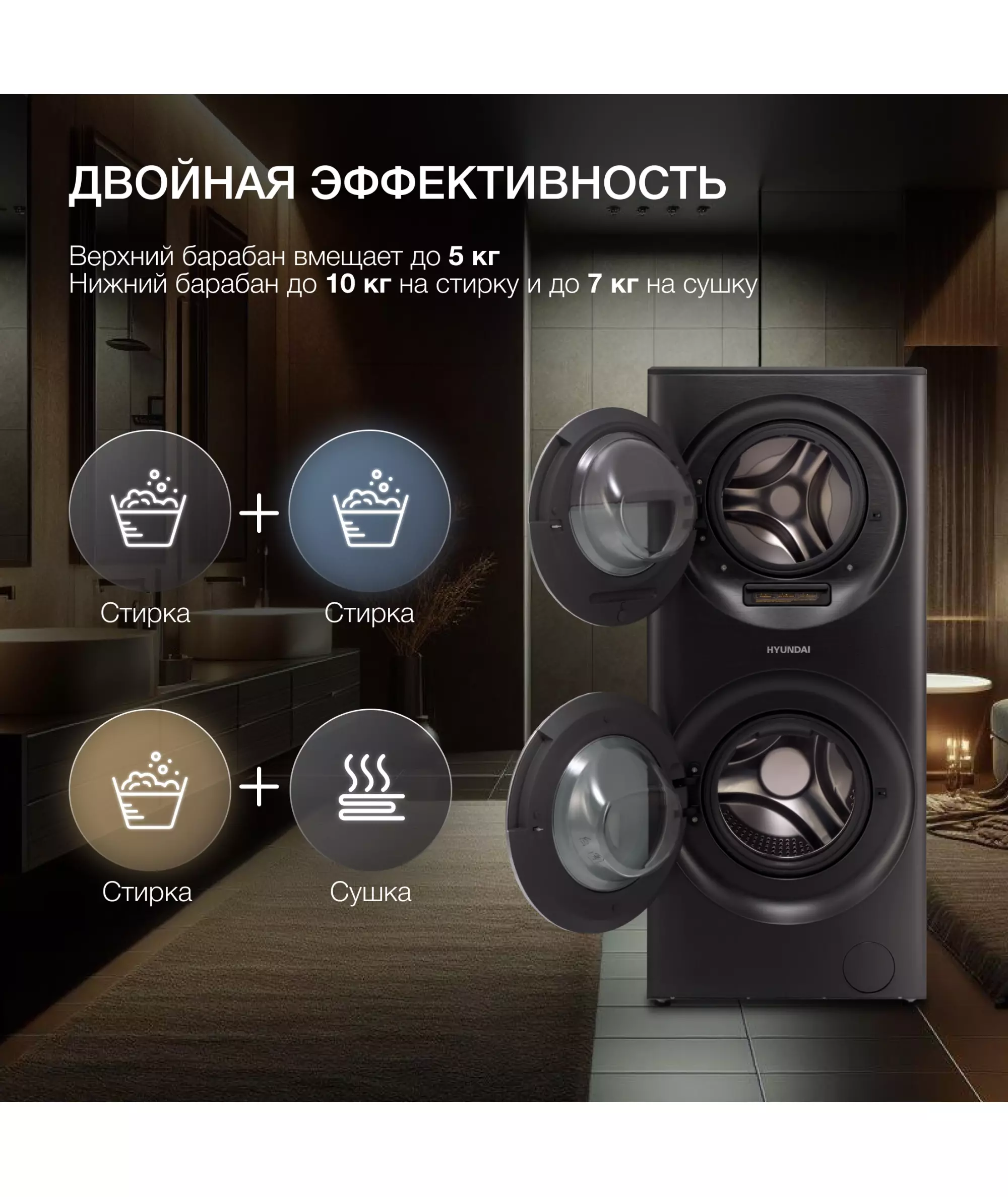 Стиральная машина Hyundai Proxima WMD9424 класс: A+++ загр.фронтальная макс.:15кг (с сушкой) темно-серебристый [WMD9424]