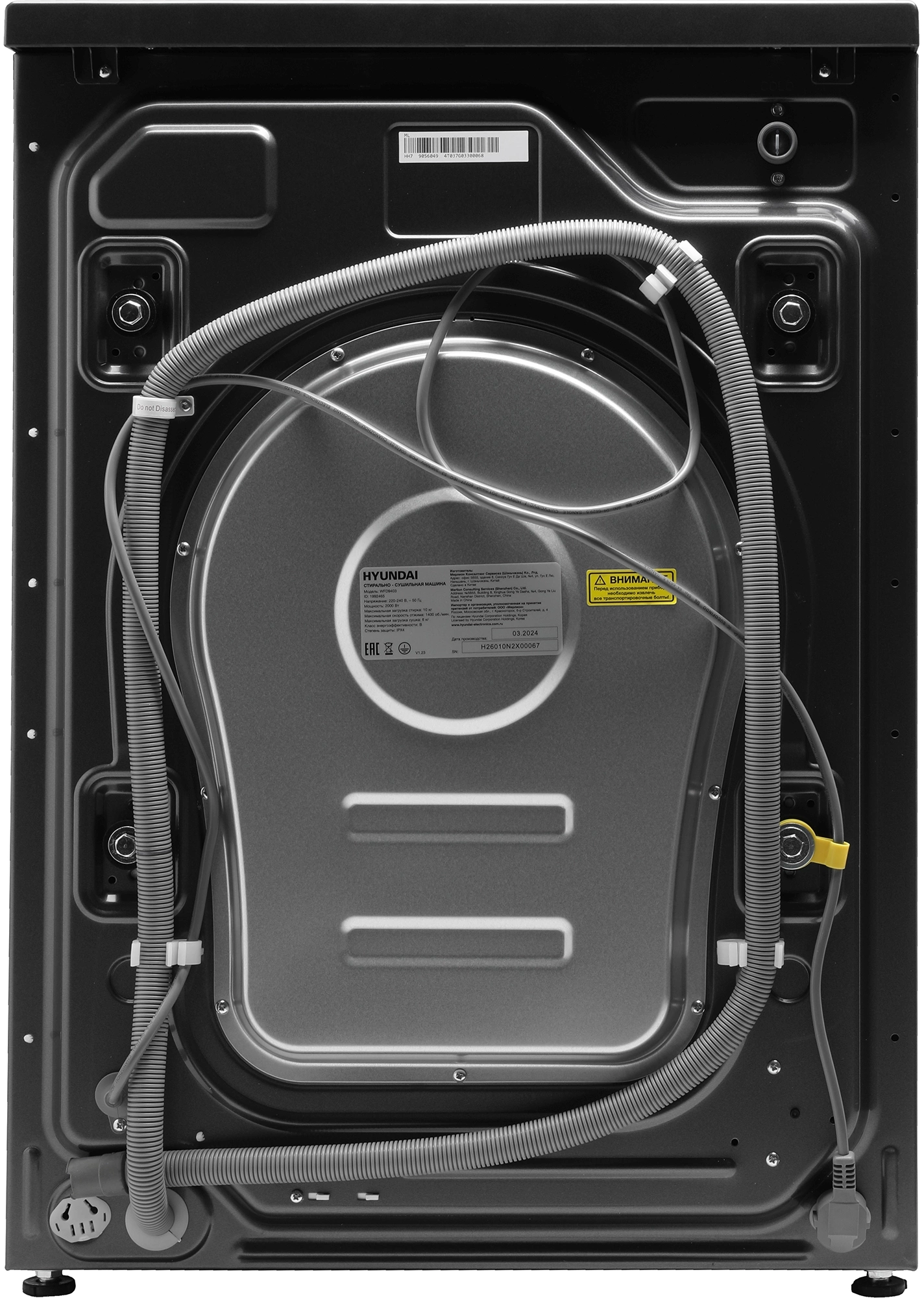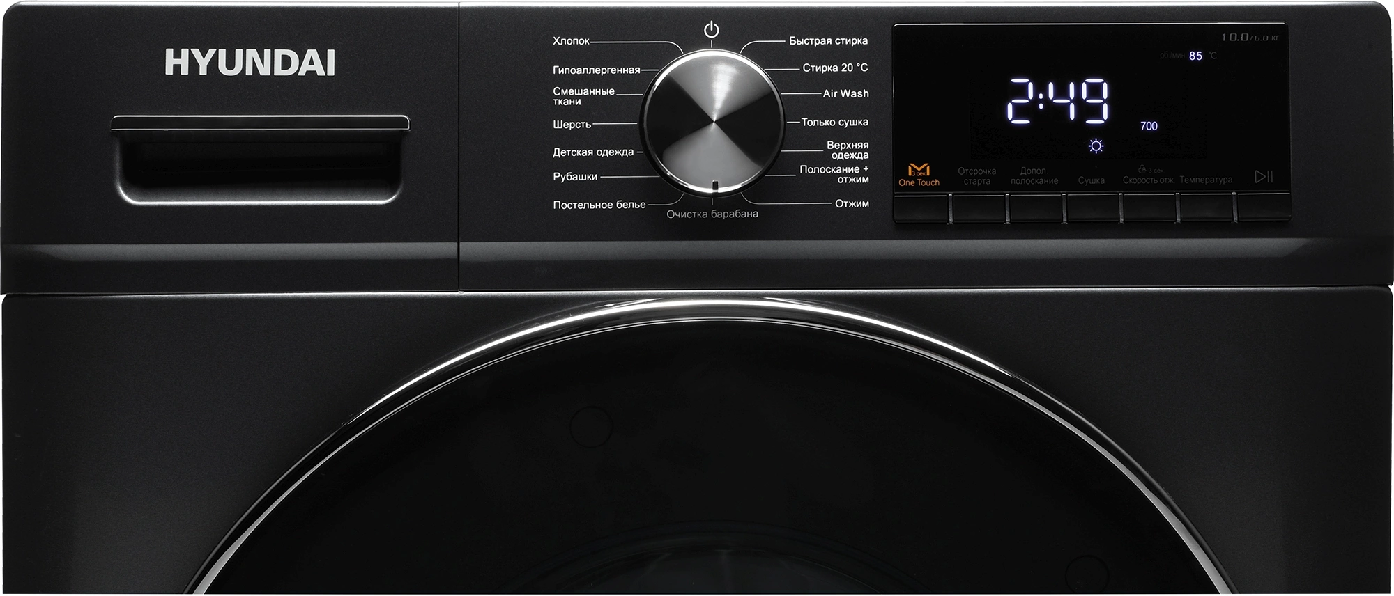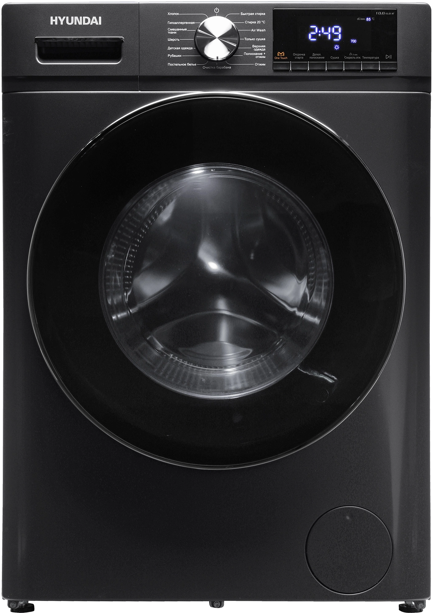 Стиральная машина Hyundai WFD9403 класс: B, загр.фронтальная, макс.:10кг, (с сушкой), темно-серый, инвертор