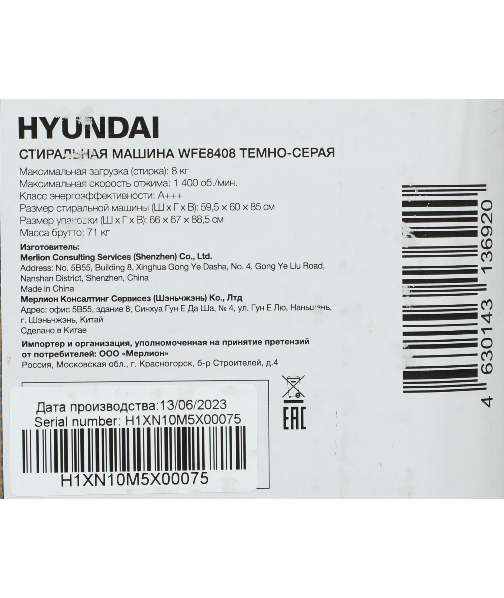Описание Hyundai WFE8408