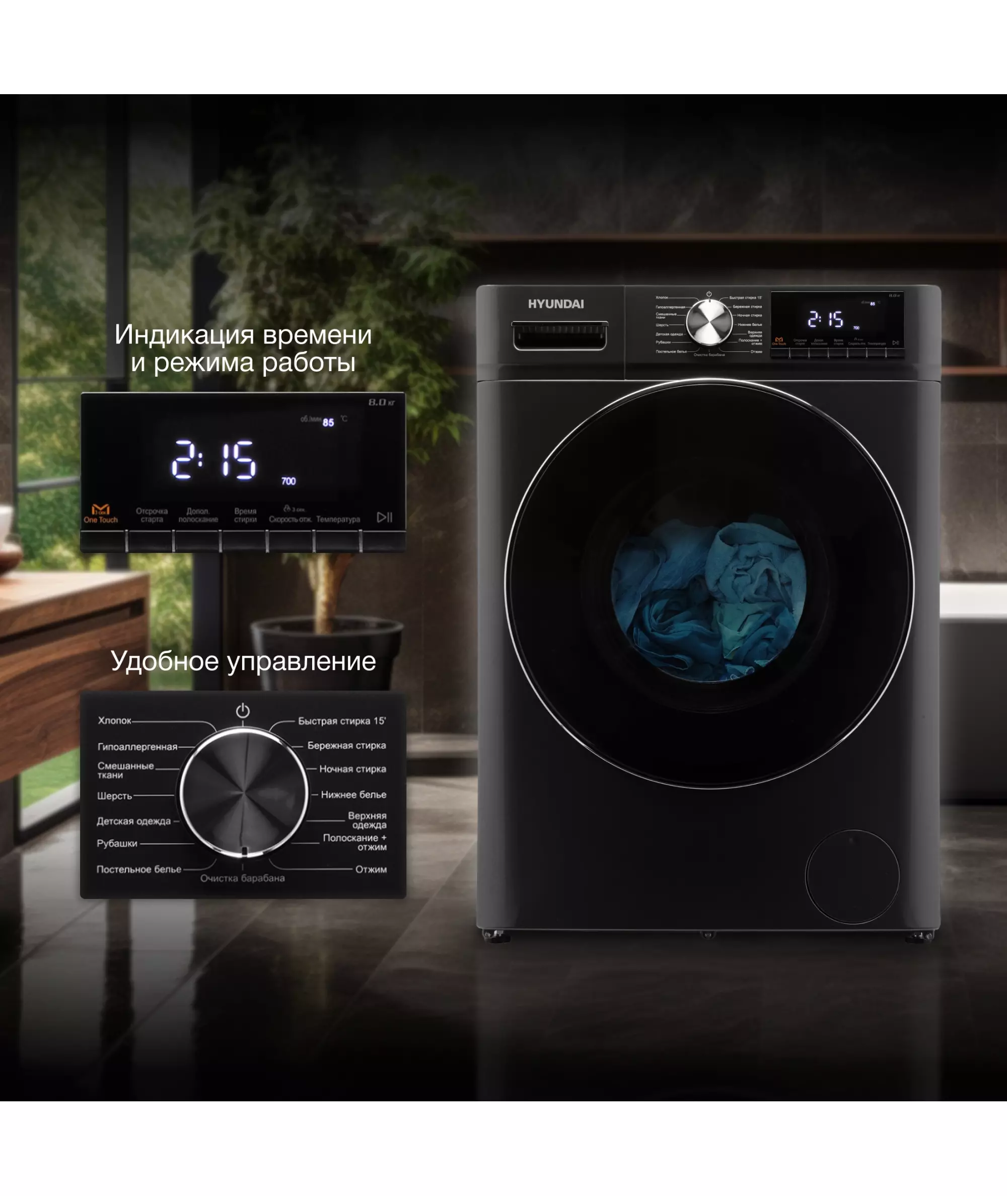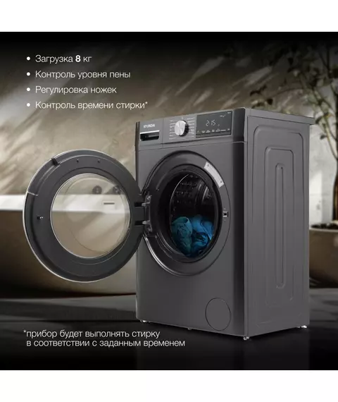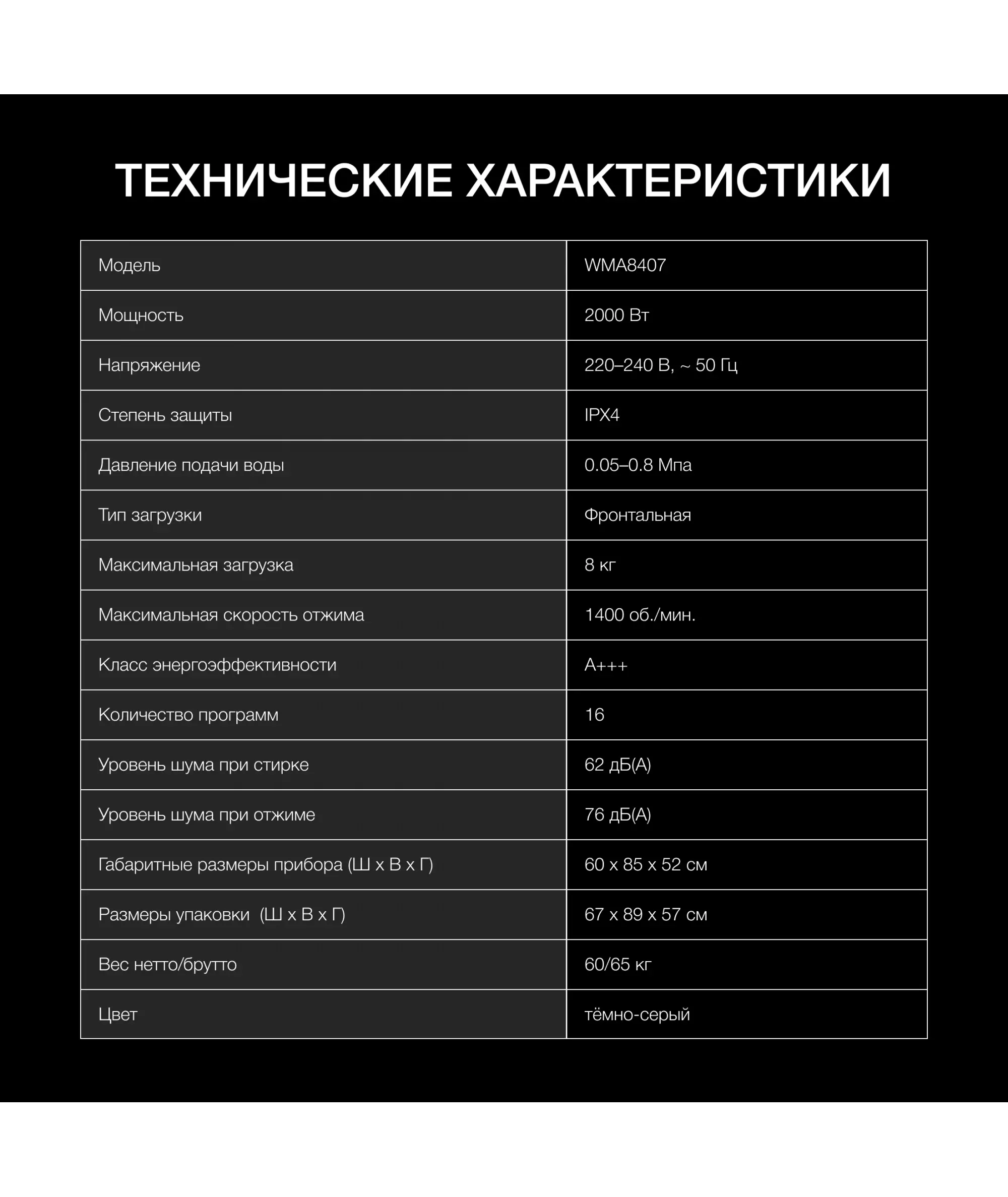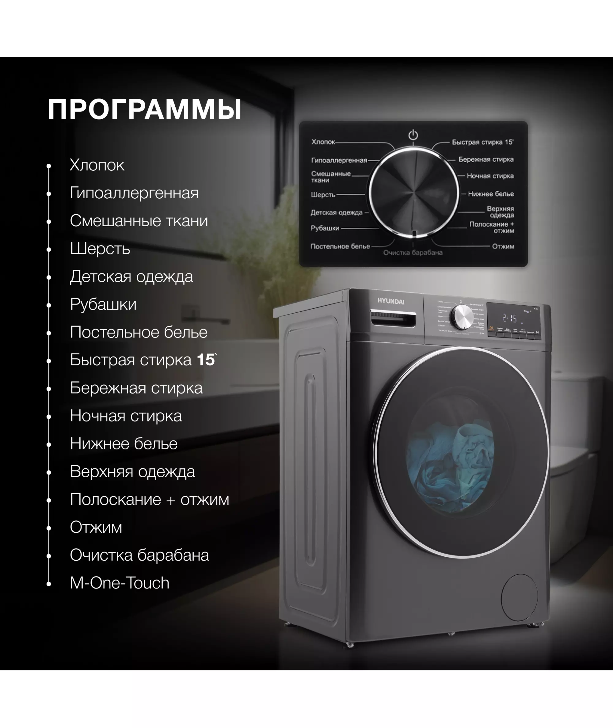 Стиральная машина Hyundai WMA8407 класс: A++, загр.фронтальная, макс.:8кг, темно-серый, инвертор