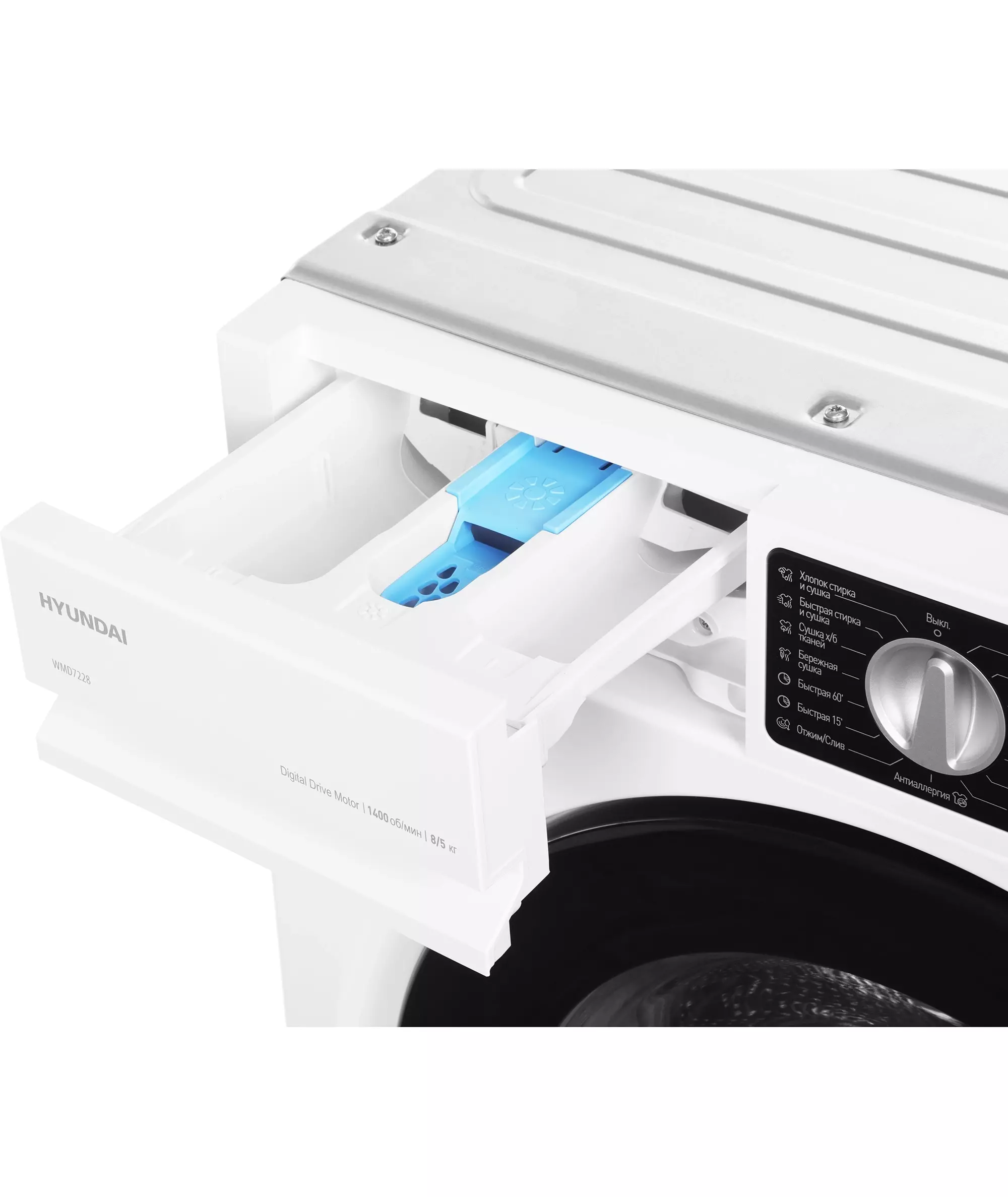 Стиральная машина Hyundai WMD7228 класс:B загрузка до 8кг отжим:1400об/мин белый инвертер