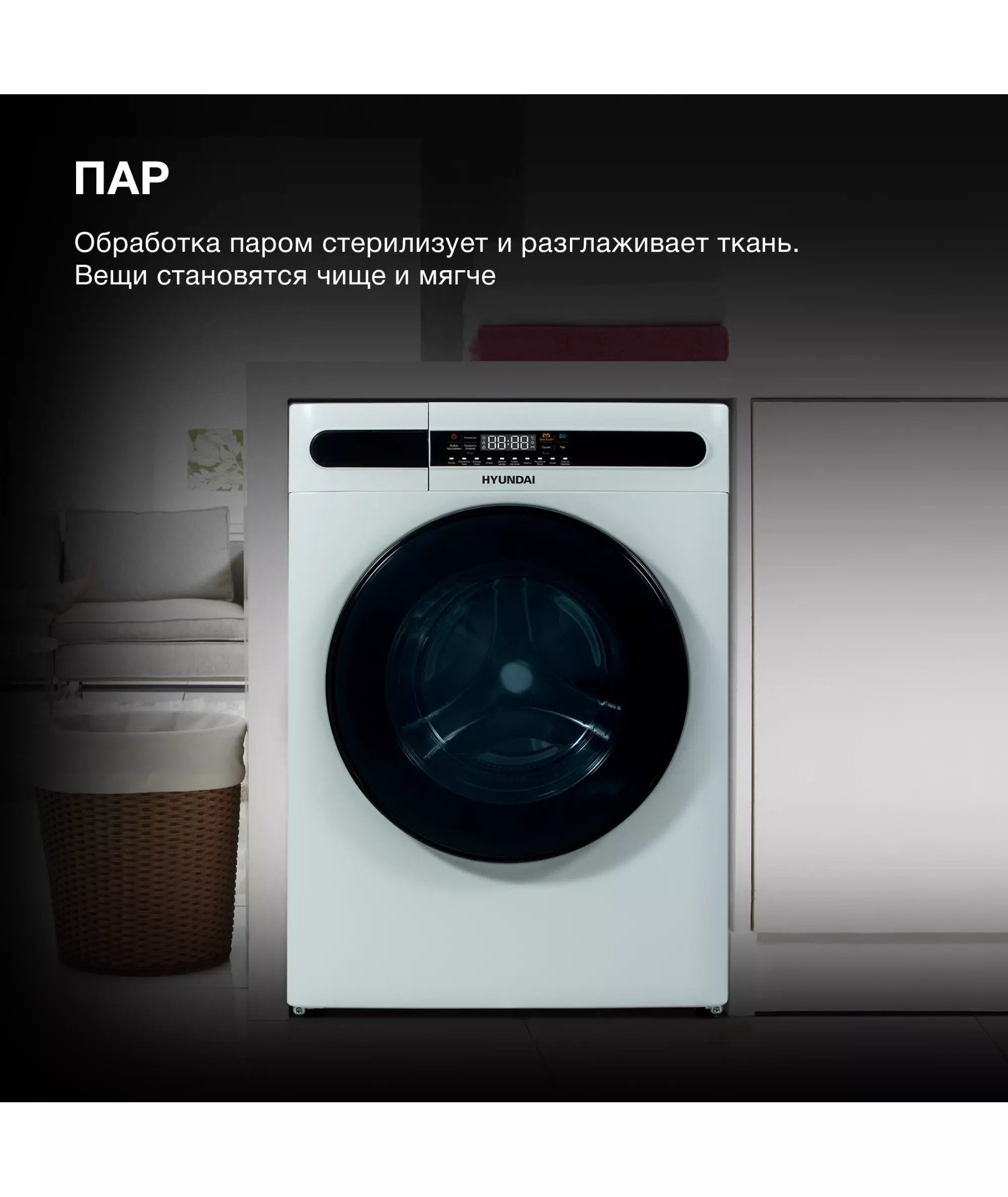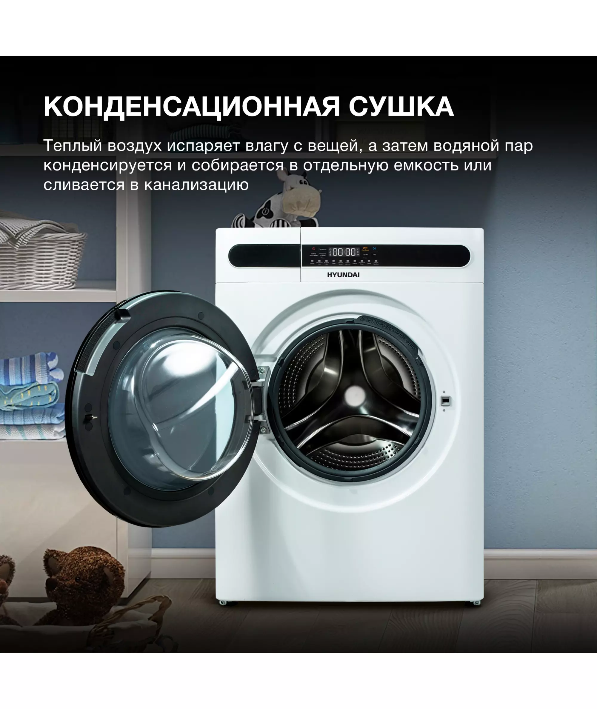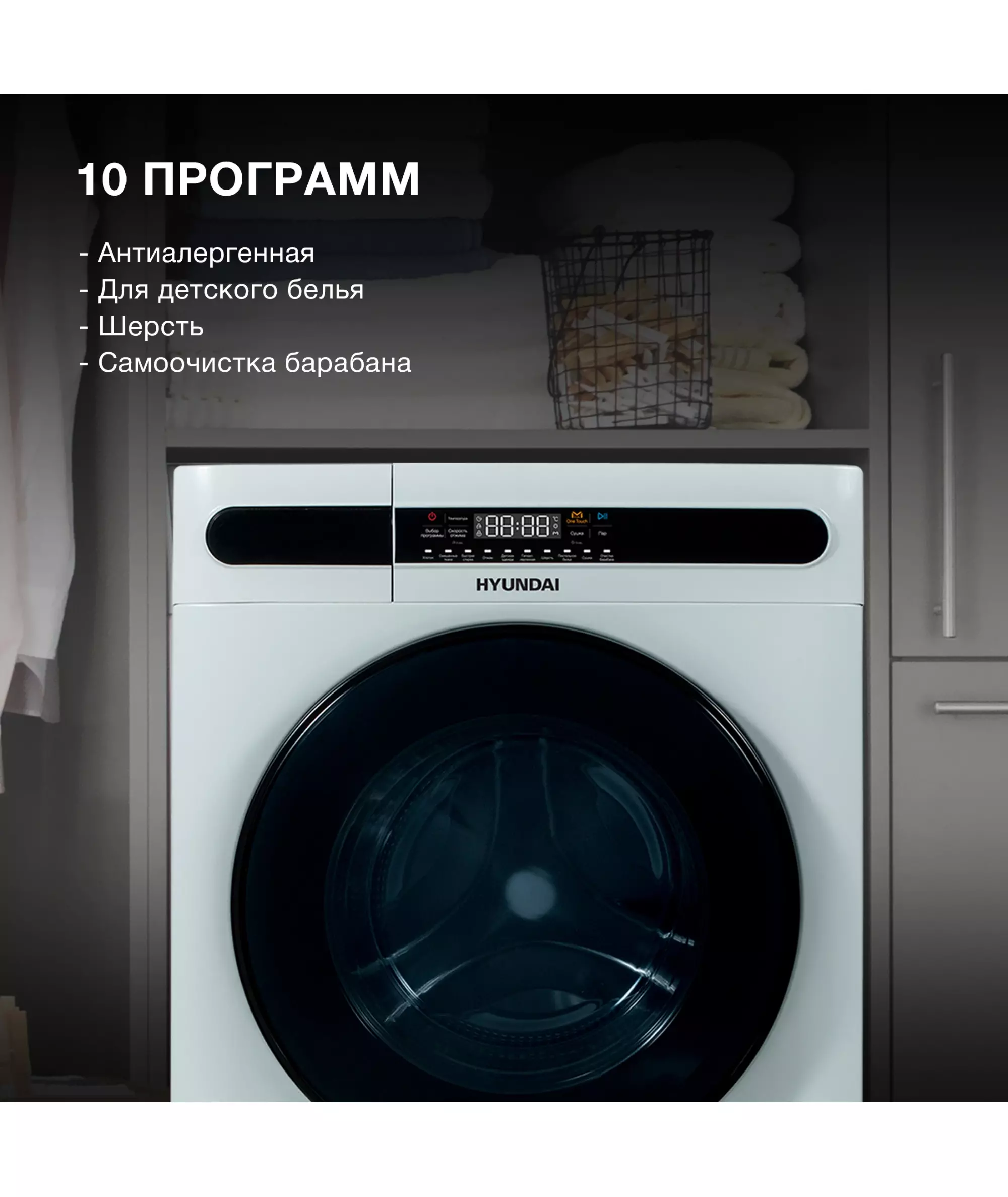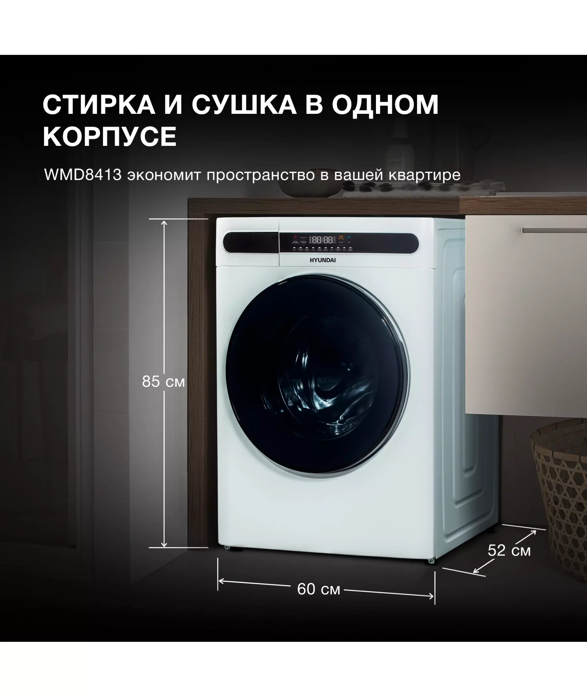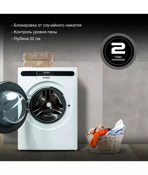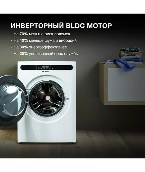 Стиральная машина Hyundai WMD8413 класс: A++, загр.фронтальная, макс.:8кг, (с сушкой), белый, инвертор