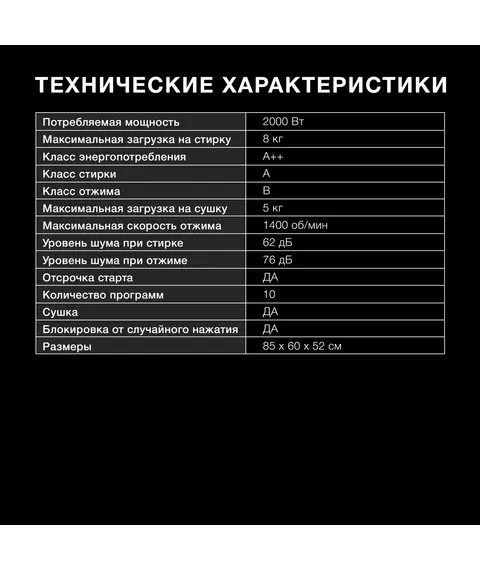| Максимальная загрузка на сушку | 5 кг |