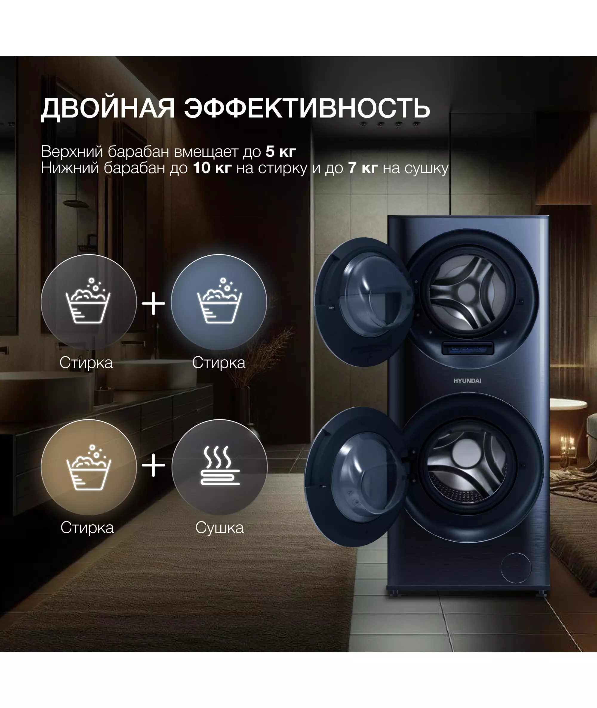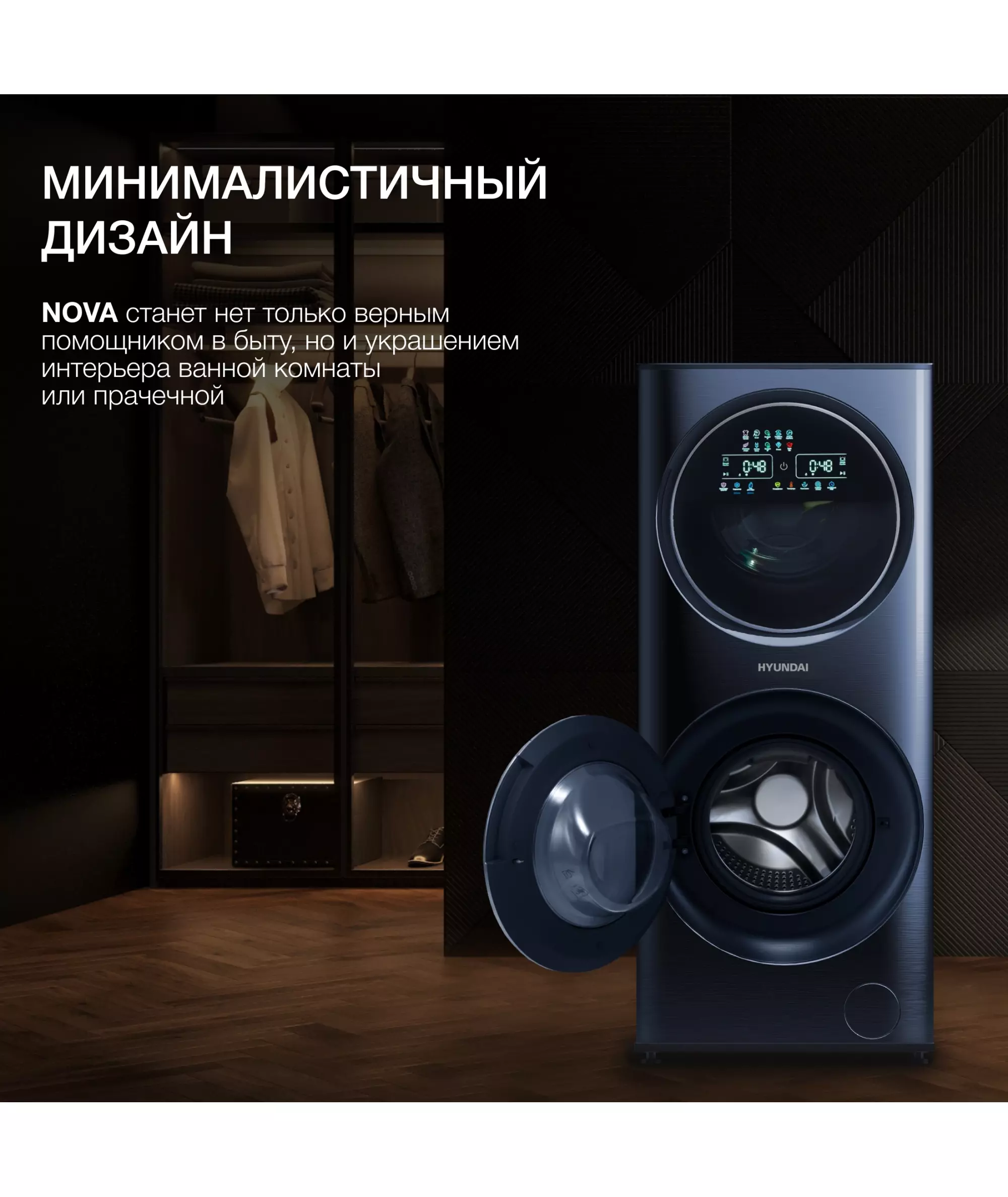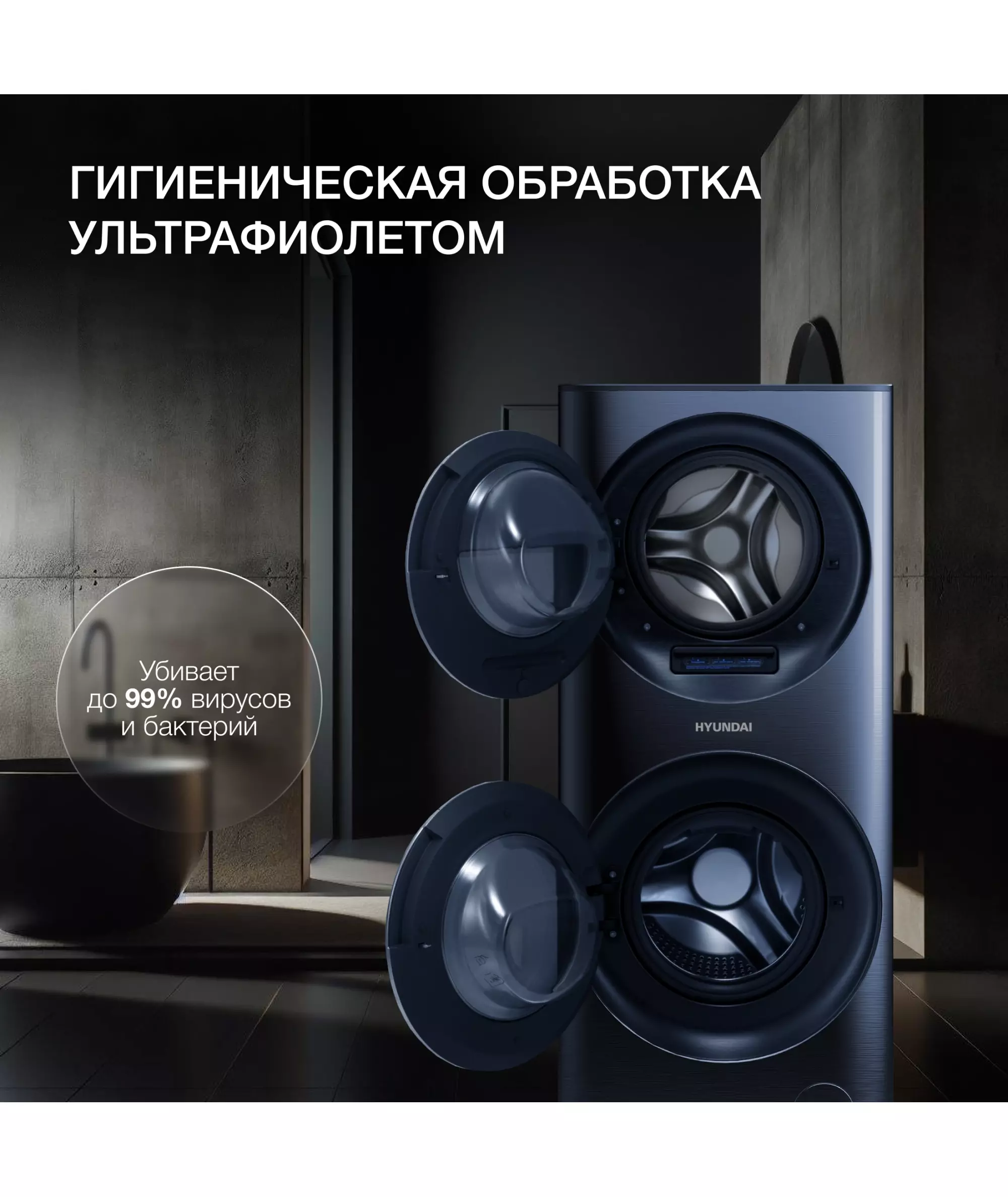 Стиральная машина Hyundai WMD9425 класс: A+++ загр.фронтальная макс.:15кг (с сушкой) темно-синий