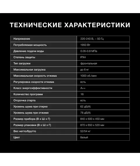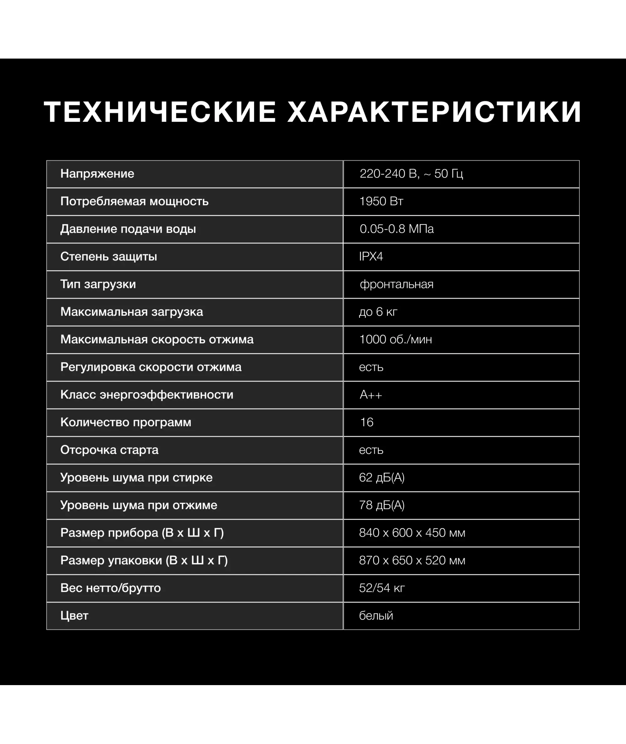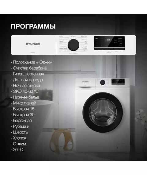 Стиральная машина Hyundai WME6008 класс: A++, загр.фронтальная, макс.:6кг, белый