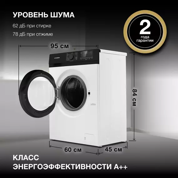 Стиральная машина Hyundai WME6009 класс: A++, загр.фронтальная, макс.:6кг, белый
