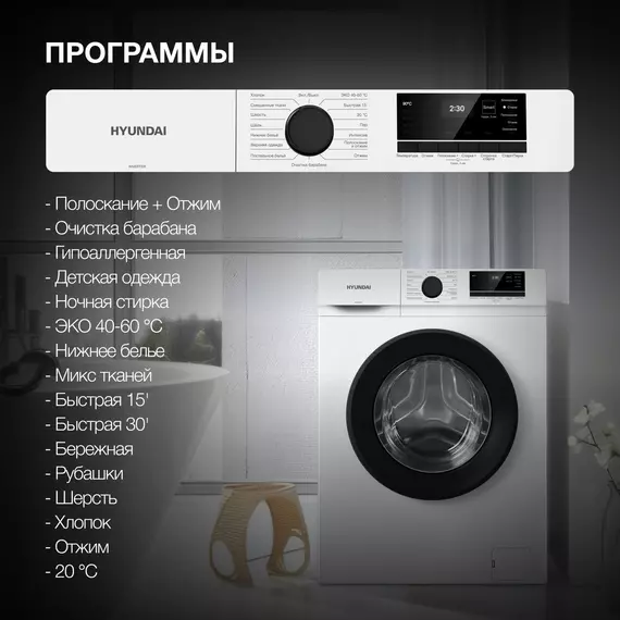 Стиральная машина Hyundai WME8203 класс: A+++, загр.фронтальная, макс.:8кг, белый, инвертор