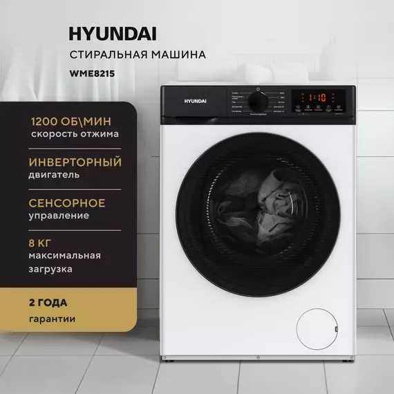 Стиральная машина Hyundai WME8215 класс A, фронтальная, макс. 8кг, белый, инвертор