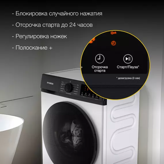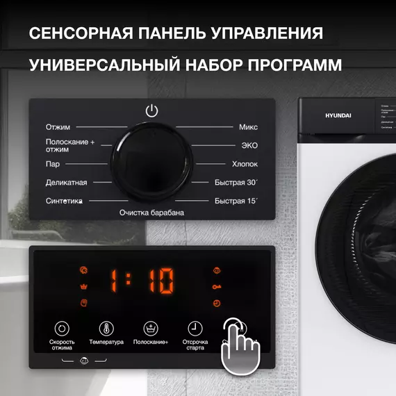 | Комплектация | Стиральная машина Hyundai; Гарантийный талон; Руководство пользователя |