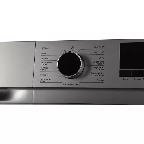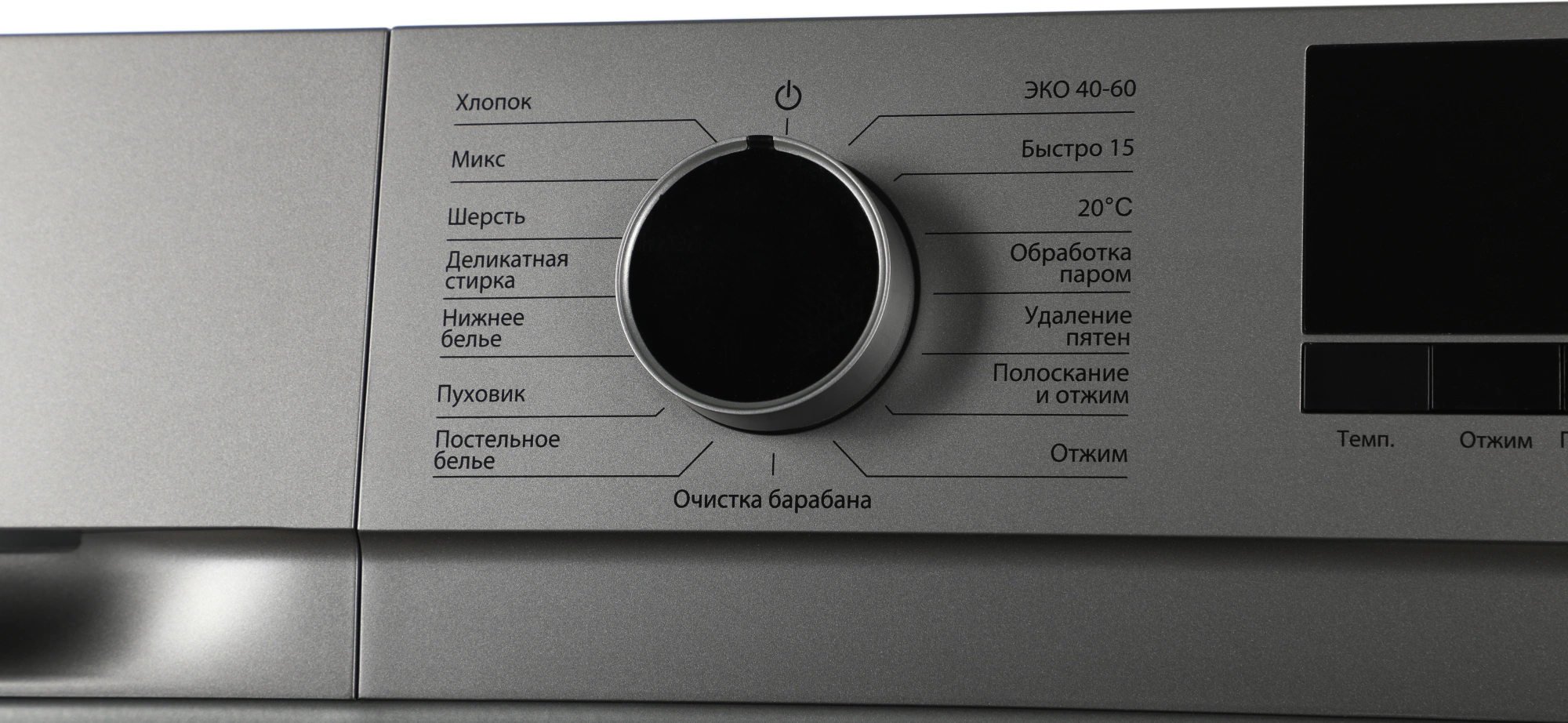 Хлопок, Микс, Шерсть, Деликатныя стирка, нижнее белье, Пуховик, Постельное белье, очистка барабанна, ЭКО 40-60, Быстрый 15, 20, Обработка паром, Удаление пятен, Полоскание и отжим, Отжим