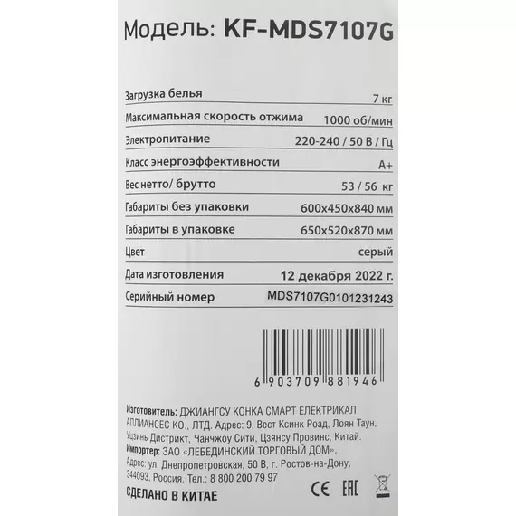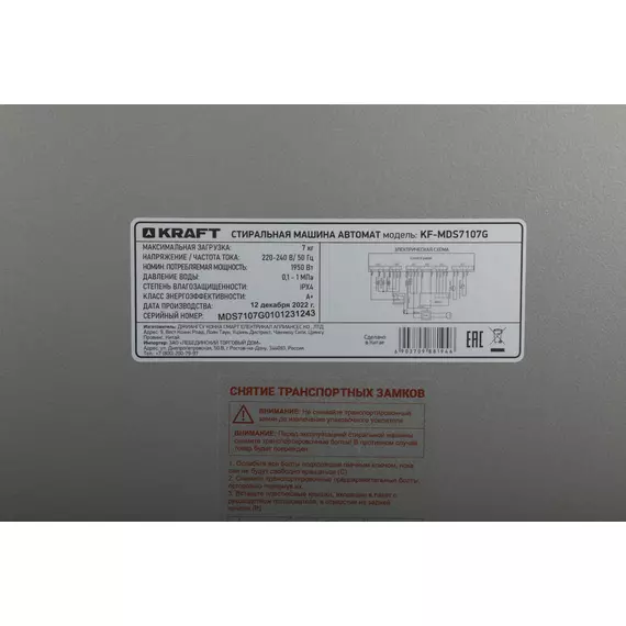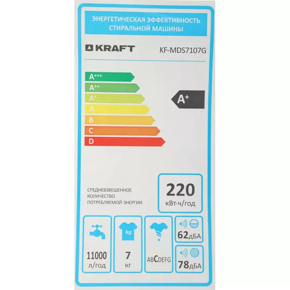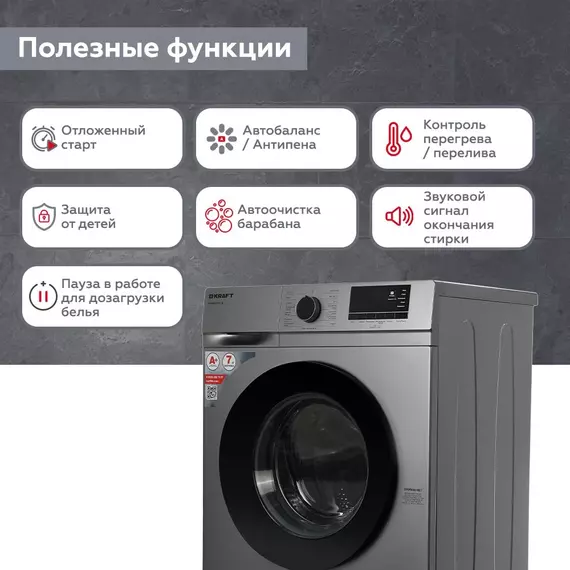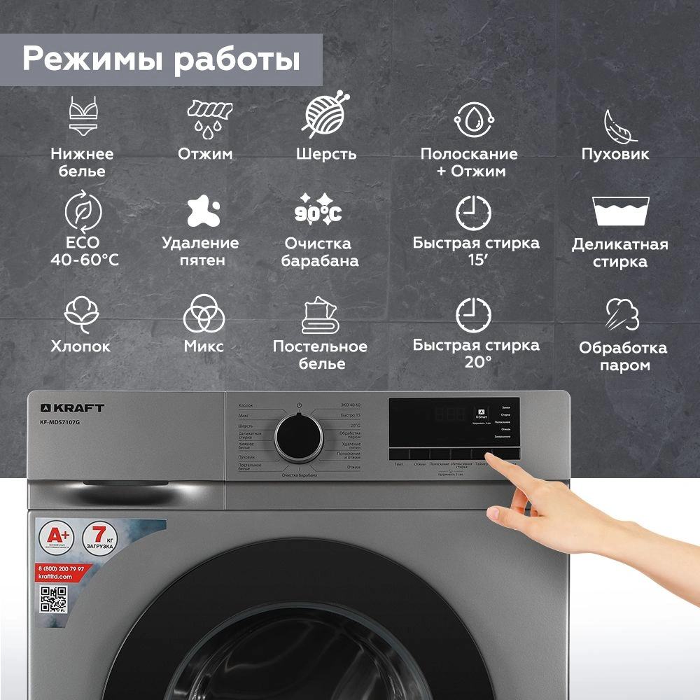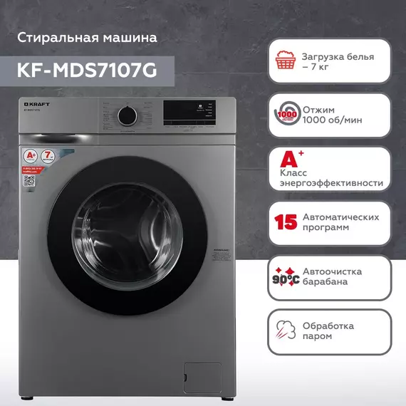 Стиральная машина Kraft KF-MDS7107G класс: A+ загр.фронтальная макс.:7кг серый