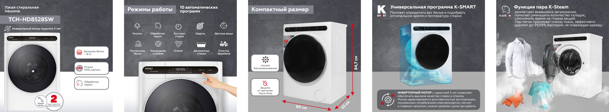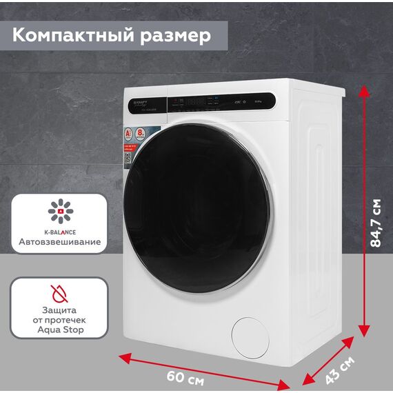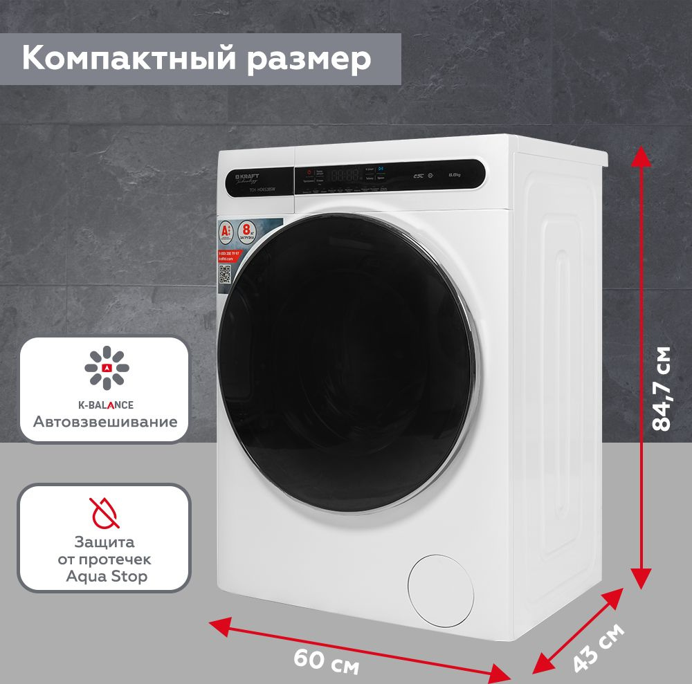 Стиральная машина Kraft TCH-HD8528SW класс: A+++ загр.фронтальная макс.:8кг белый инвертор