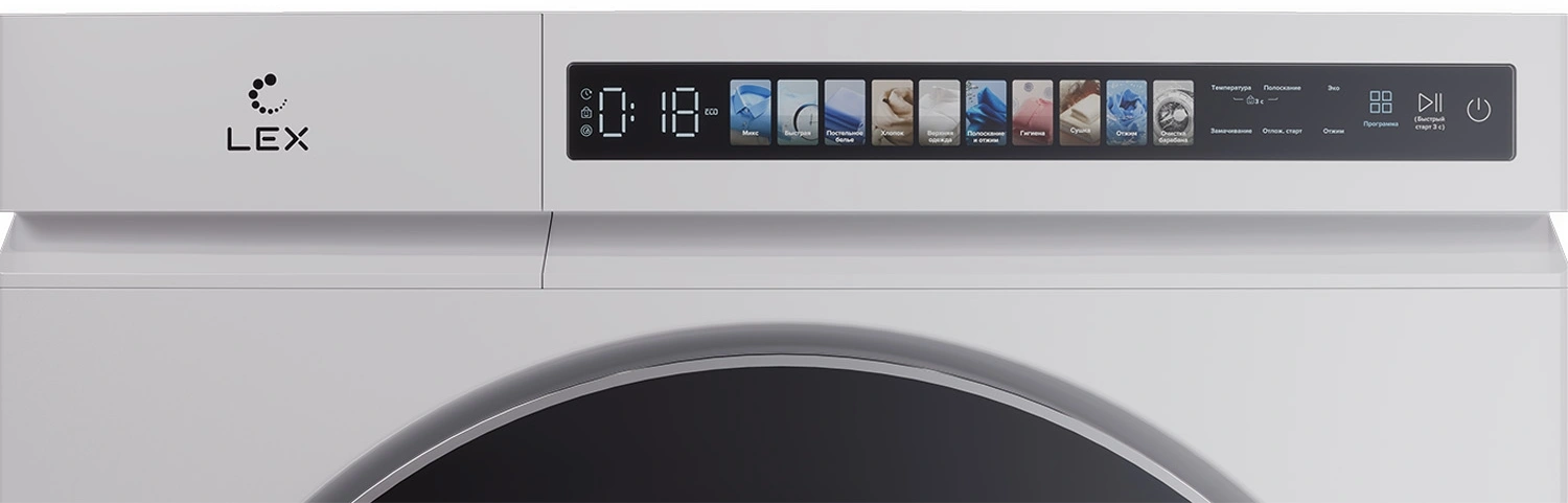 Быстрая, Верхняя одежда, Гигиена, Микс, Очистка барабана, Полоскание + отжим, Постельное белье, Только отжим, Хлопок