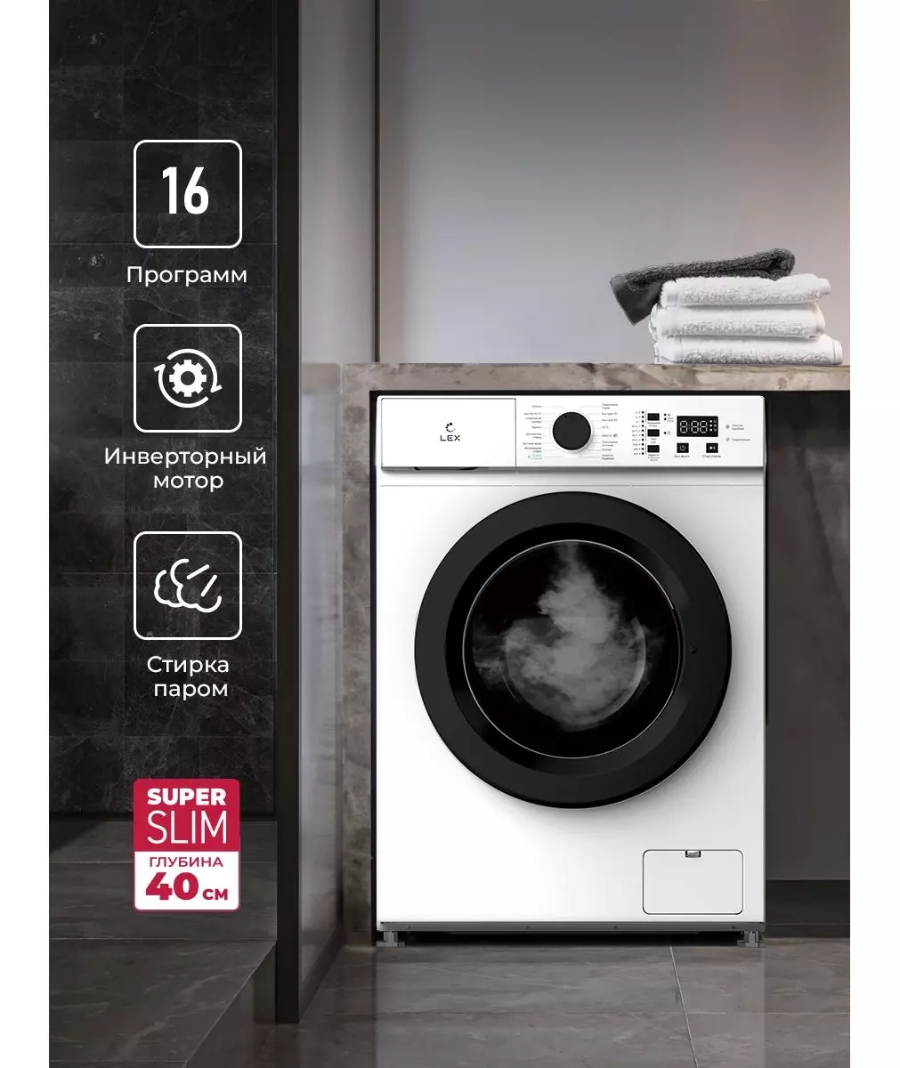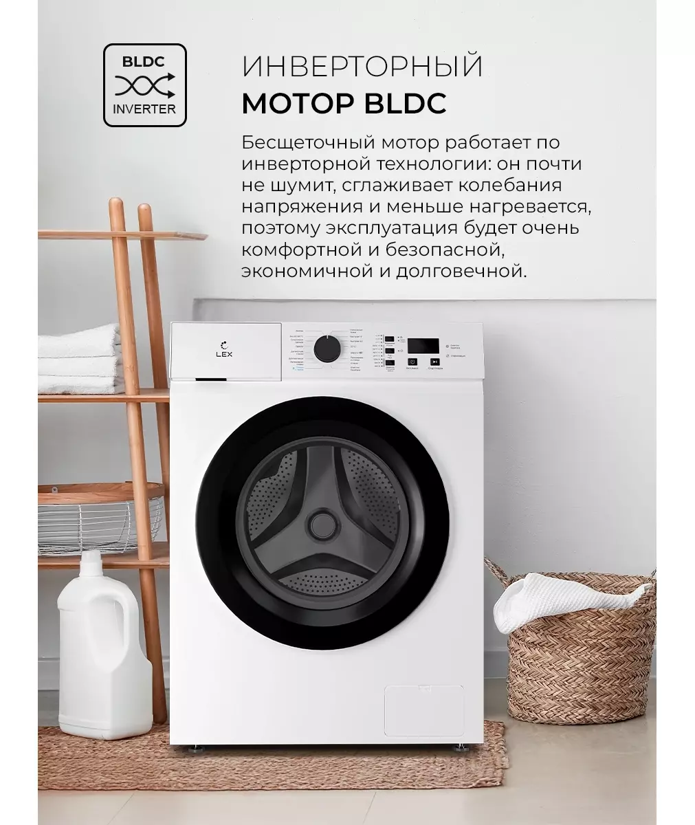 Стиральная машина LEX LWM06010BLIDsmall класс: A++, загр.фронтальная, макс.:6кг, белый, инвертор [CHSK100031]