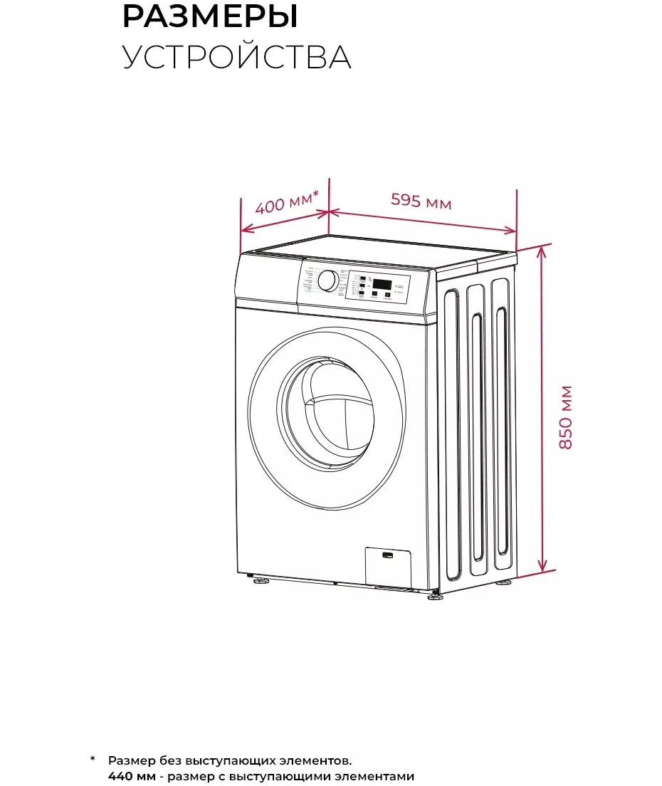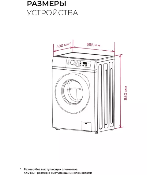 | Глубина с учетом выступающих элементов | 44 см |