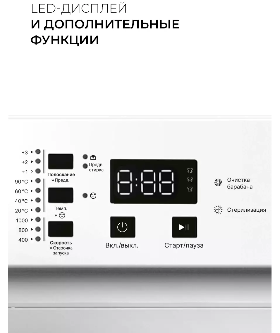 | Безопасность и управление | блокировка от случайного нажатия, дисплей, защита от детей, таймер отсрочки запуска |