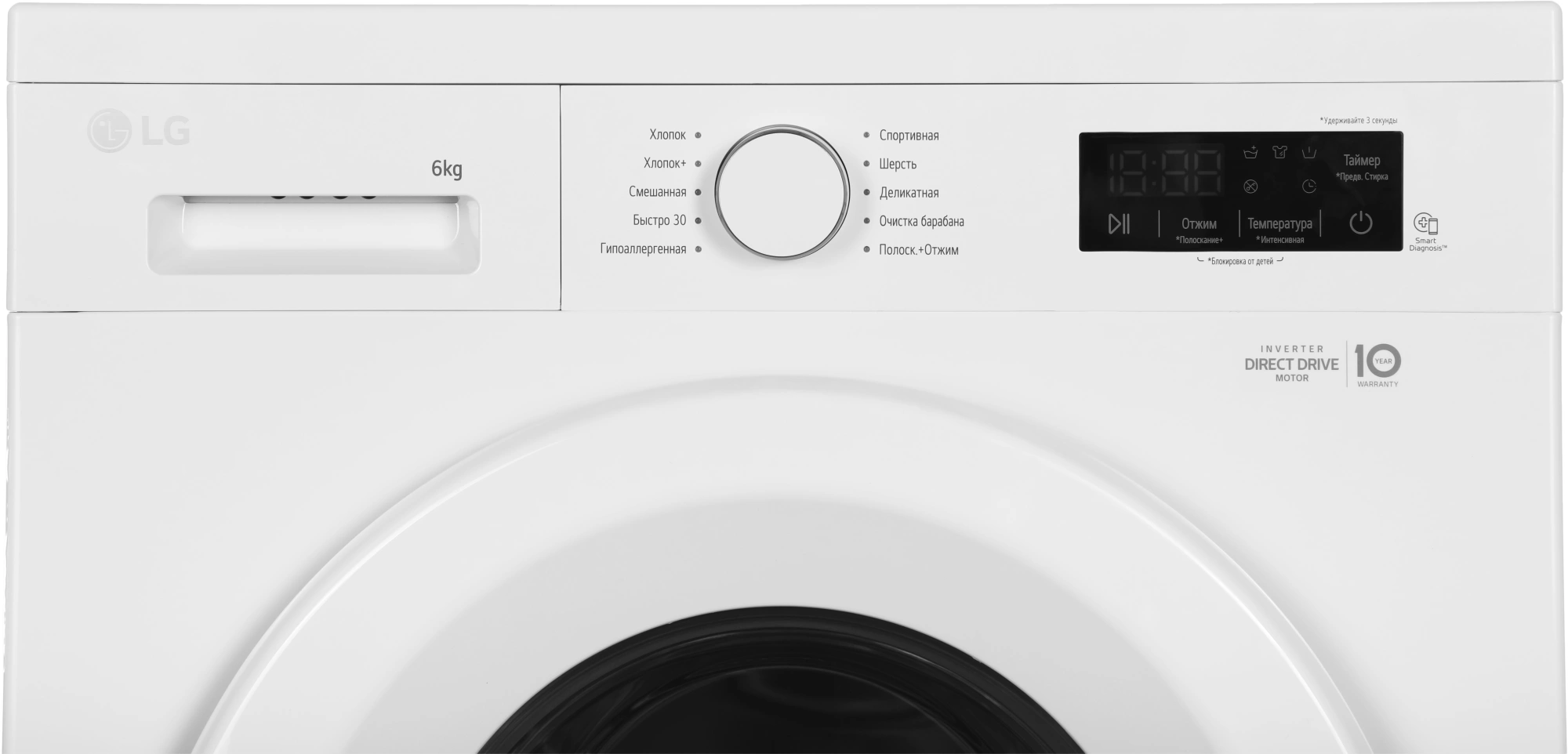 Стиральная машина LG F2Y1NS3W класс: A загр.фронтальная макс.:6кг белый инвертер